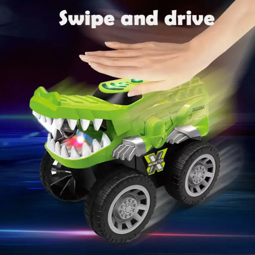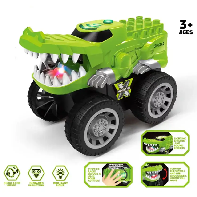 ITTL B/O Infrared Sensor Electric Bite Crocodile Light Sound Variable Speed Hand Induction Car with Building Block Toys for Kids