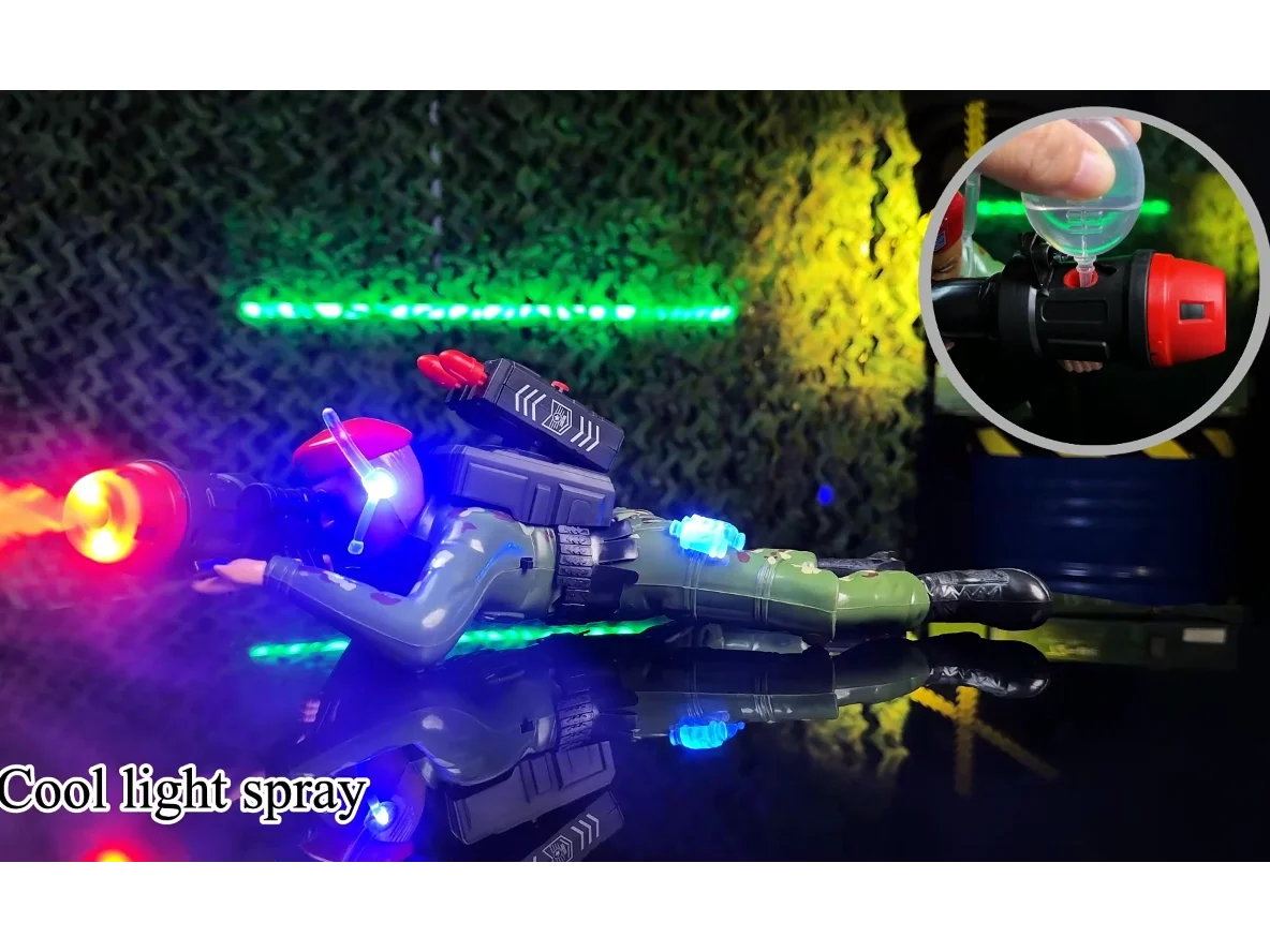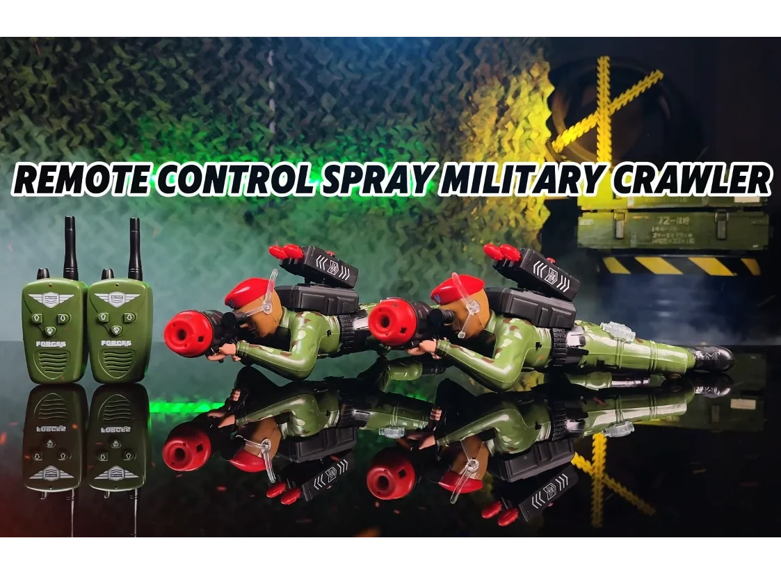 ITTL Remote Control Crawling Soldier Force Toy Battery Operated Shooting Game Light Sound Spray Military Crawler Toys for Kids