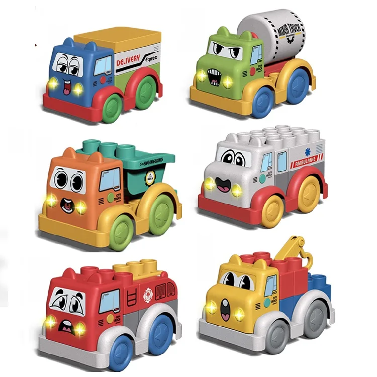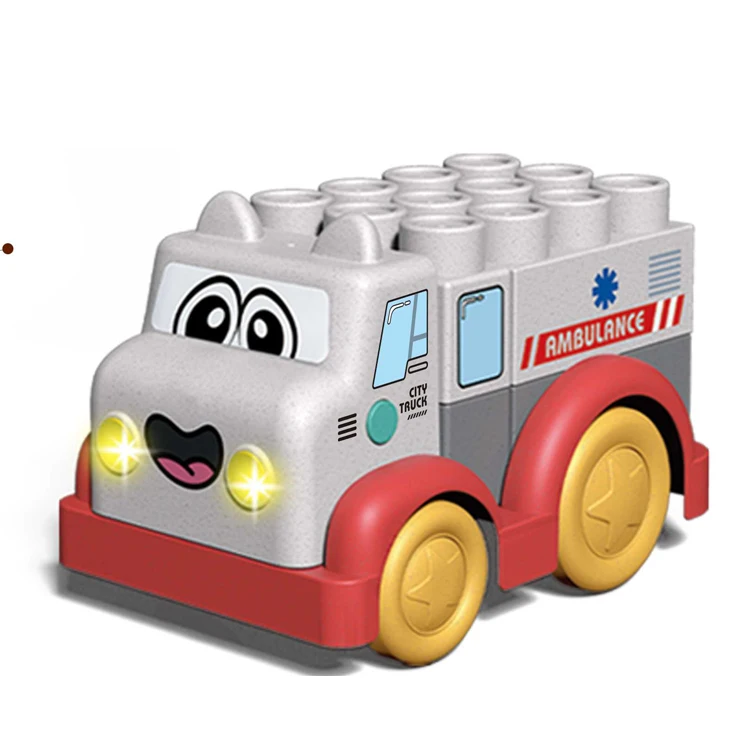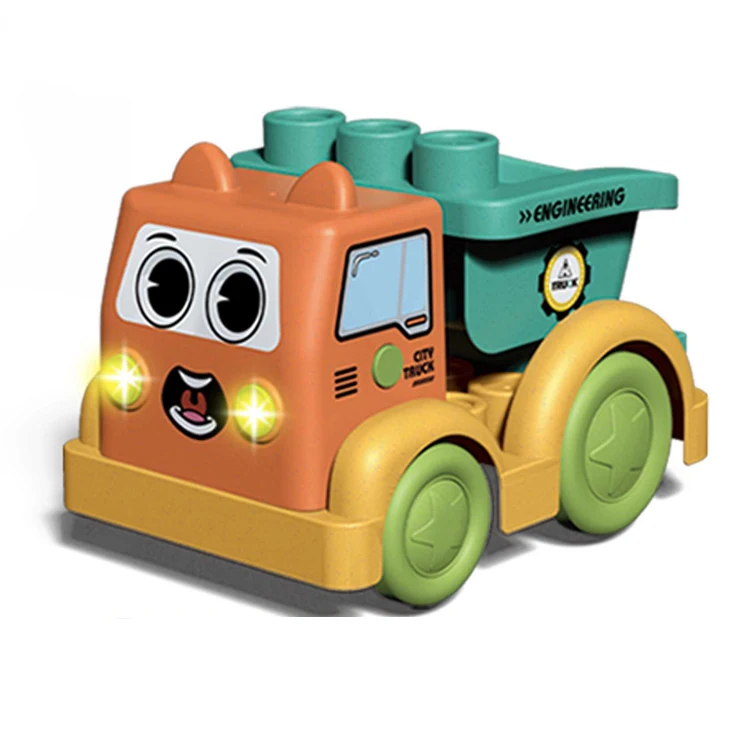 Non Toxic Wheat Straw Material Block Truck Music and Light Plastic Toy Car Truck