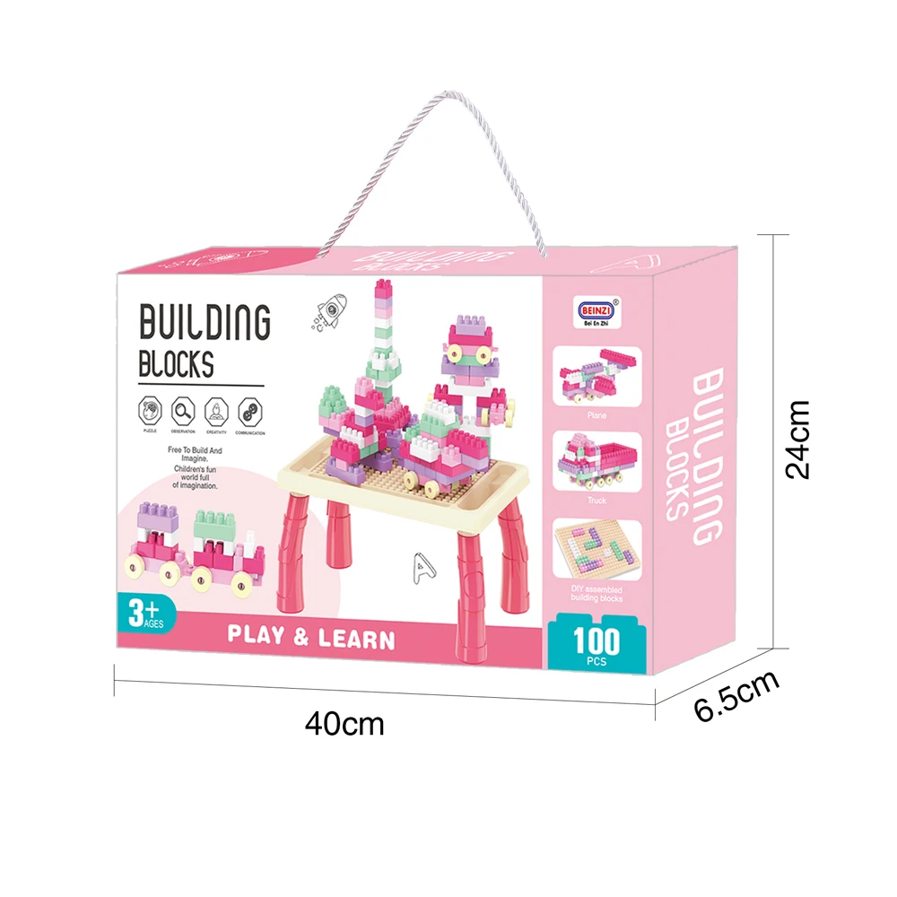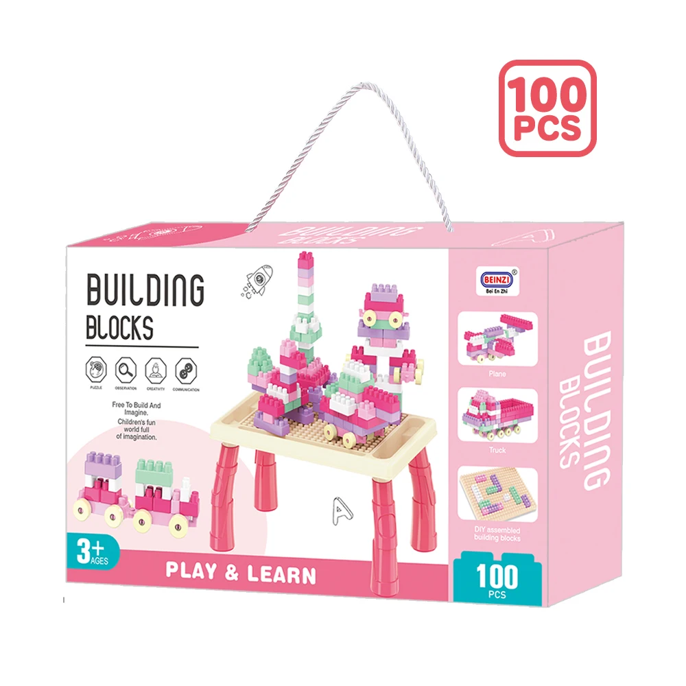ITTL 100pcs Plastic Kids Activity Table Extra Large Bricks Electronic Toy Creative Multi Assembly Game Funny DIY Macaroon