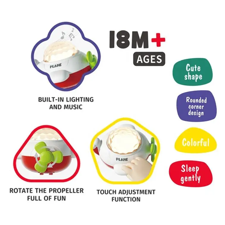 ITTL Education Baby Early Learning Airplane Night Light Projector Baby Sleeping Toys Plane Touch Projection Infant Toys for Kids
