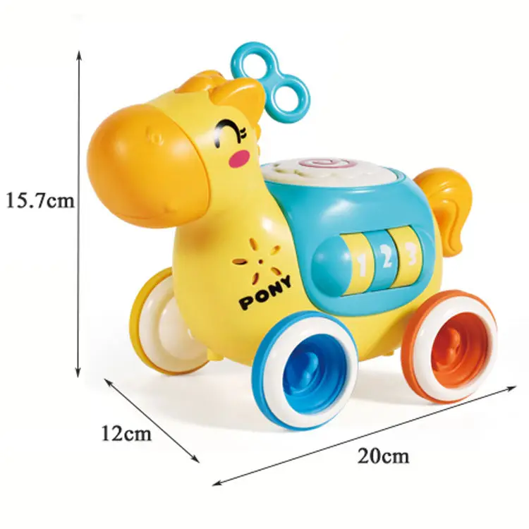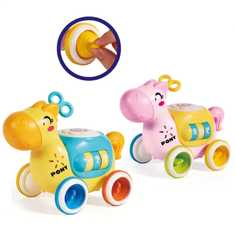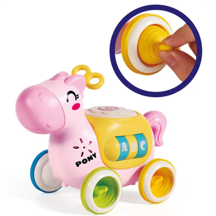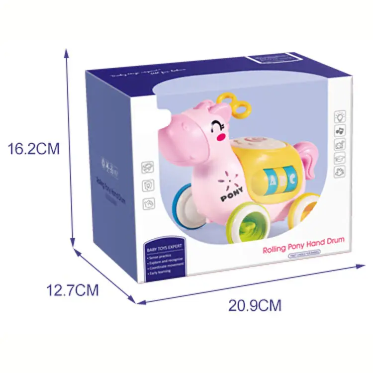 ITTL New Cartoon Vehicle Sliding Pony Hand Drum Toy With Music and Light Baby Early Learning Educational Pony Cart Toys for Kids