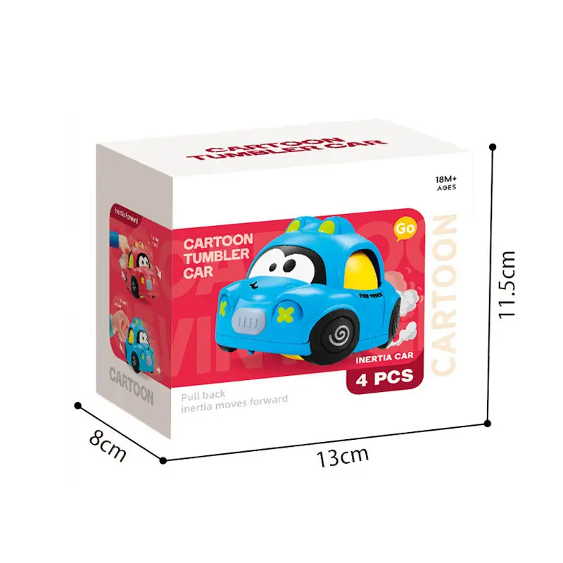 ITTL Cartoon Preschool Mini Pull Back Rotation Sliding Car Toys 2 Colors 4 PCS in Pack Cartoon Tumbler Car Baby Toys for Kids