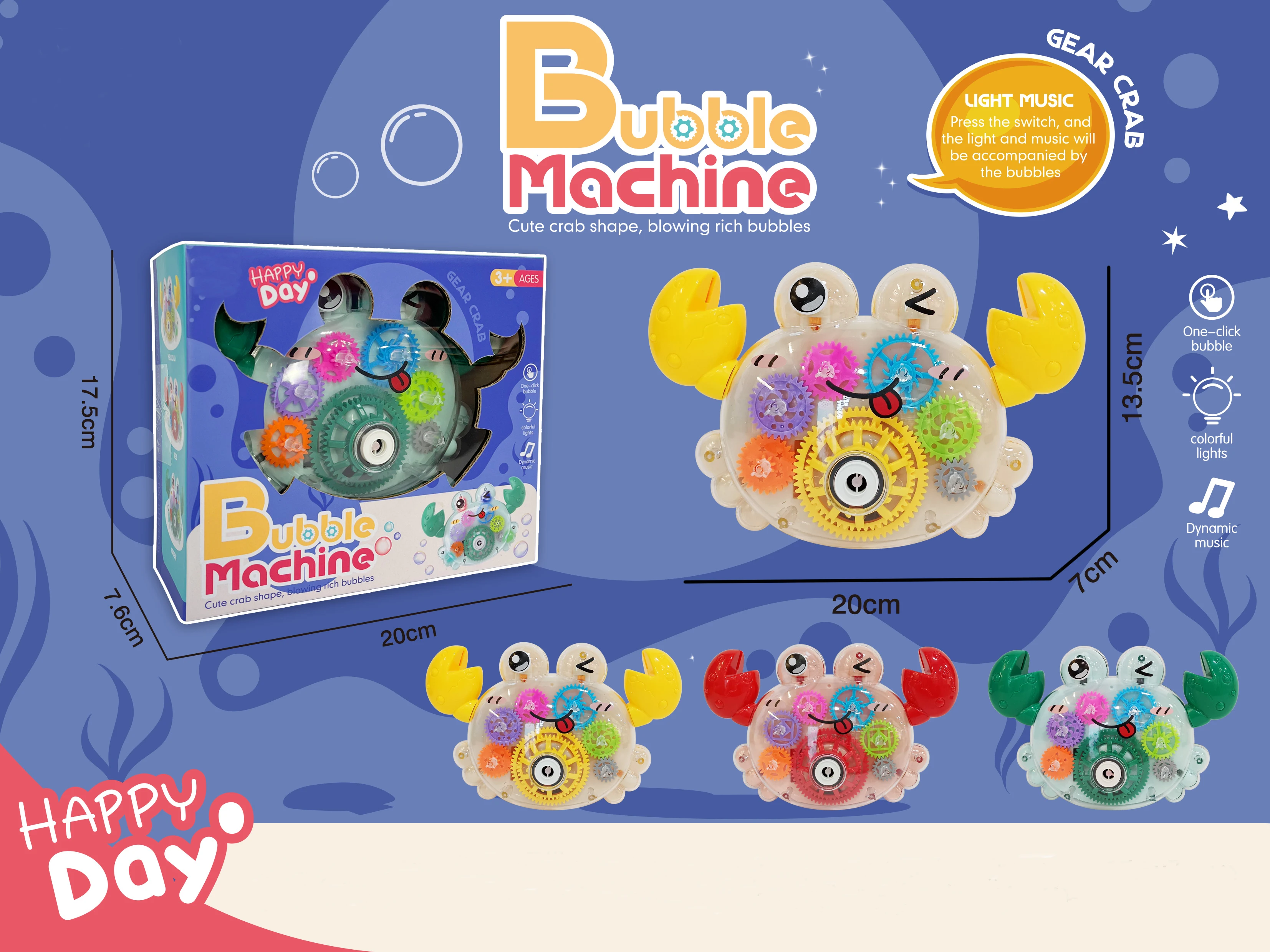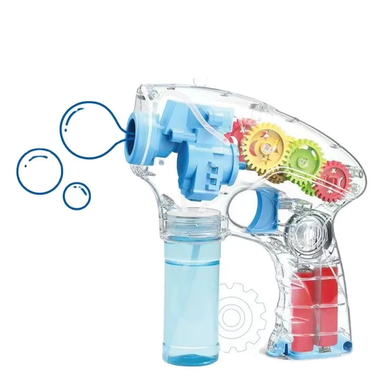 ITTL Summer Outdoor Cute Light up Battery Operated Transparent Gear Bubble Gun Gear Toy for Kids