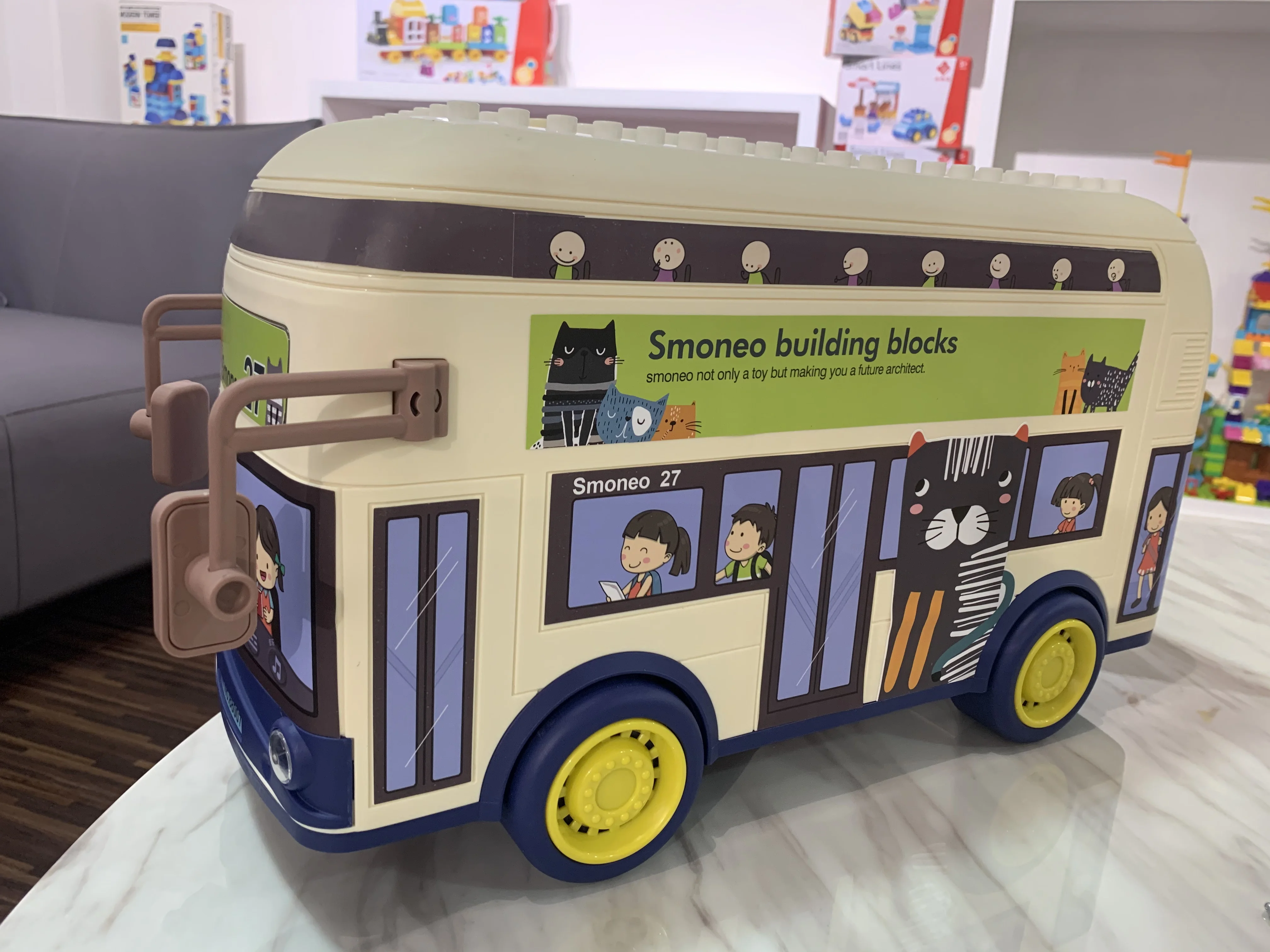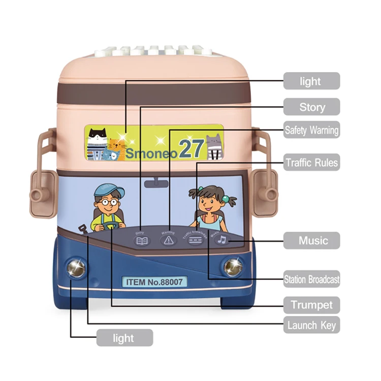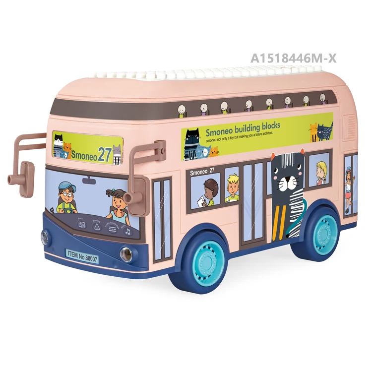 Kids Early Toys Interactive Storage Bus with 136pcs Blocks with Light and Music