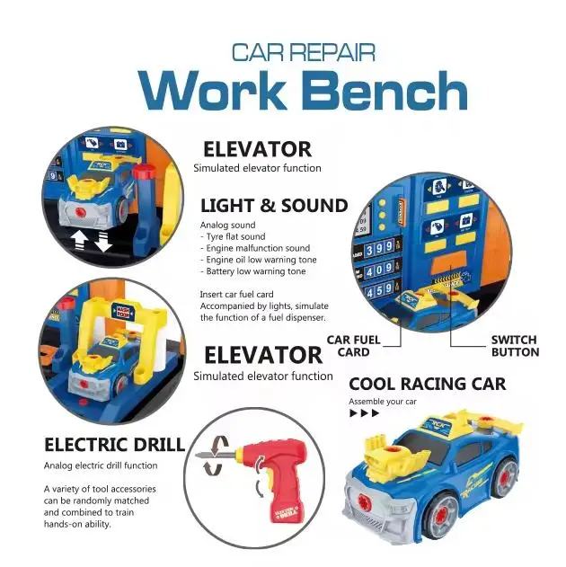 Repair Work Bench Household Tools Set Toys Plastic Kids Tooling Table with Sound and Light