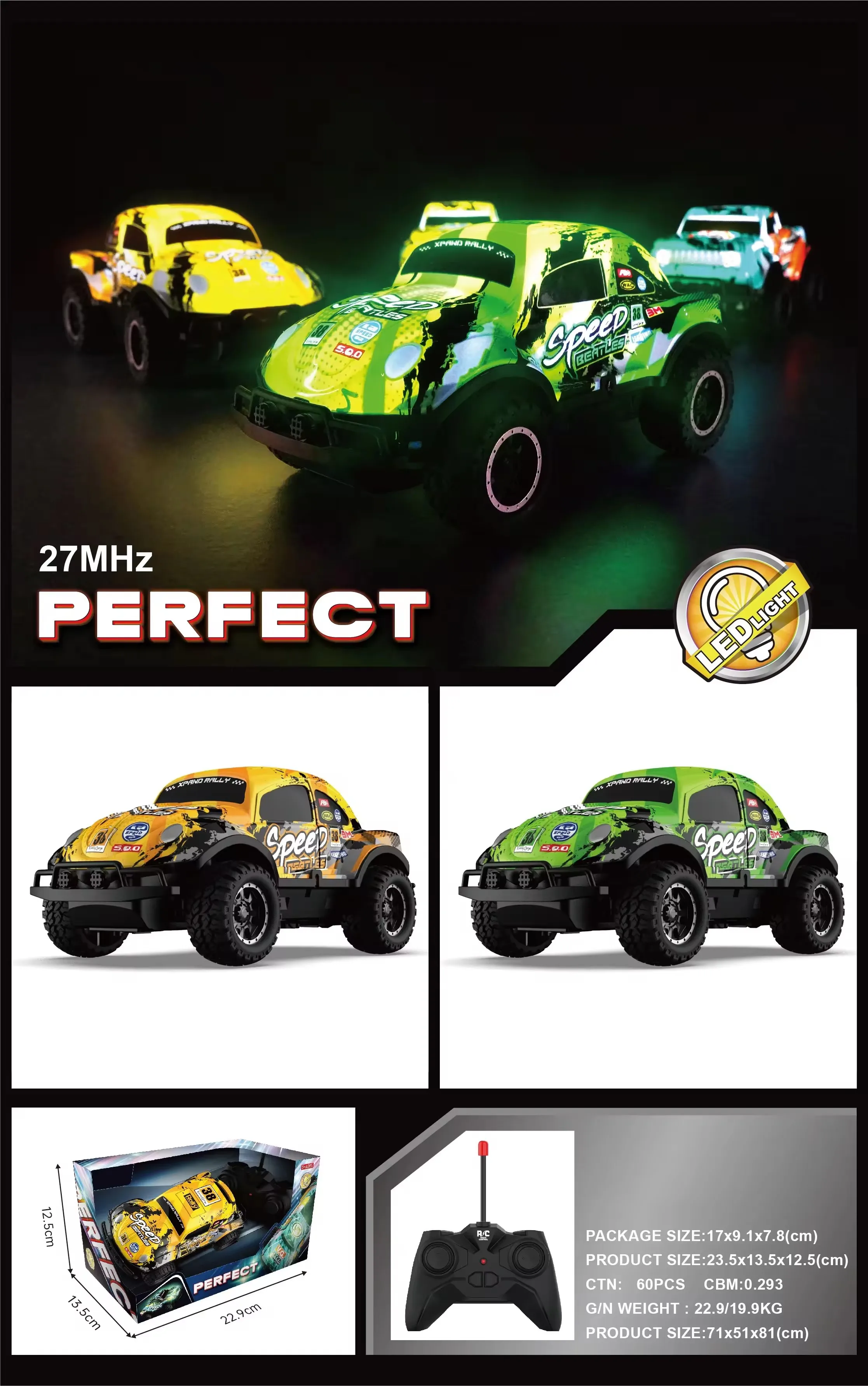 New Arrival 27Mhz 5 Channels 1:24 Yellow Remote Control Car with LED Light