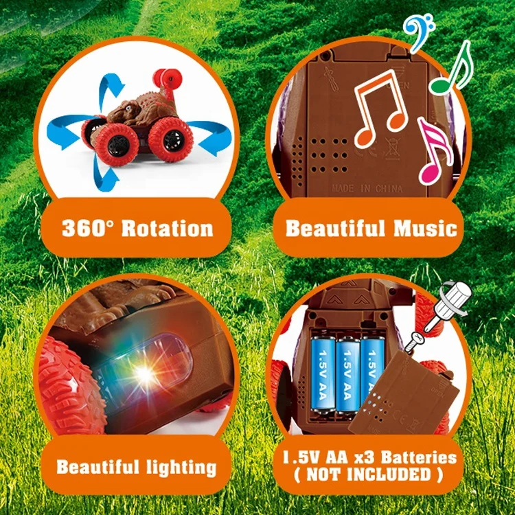 ITTL Electric Light up Boys Gift Dinosaur Stunt Car Toy with LED Light and Sound