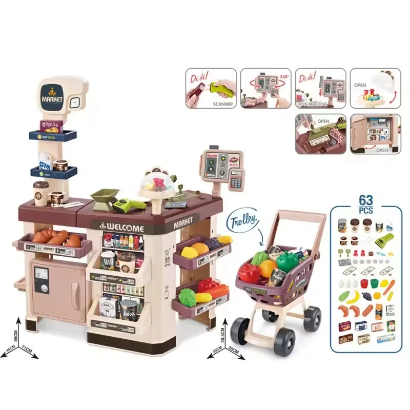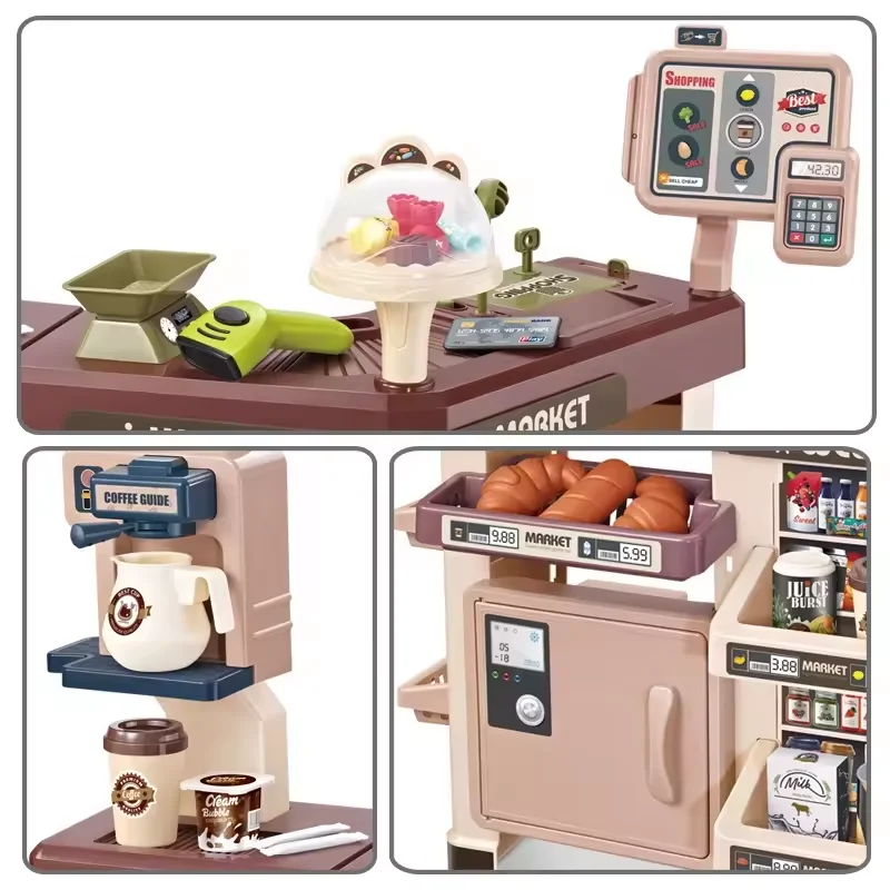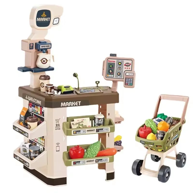 Supermarket Cash Register Toy Set for Kids Electric Role Play Durable Plastic Color Box Packaging