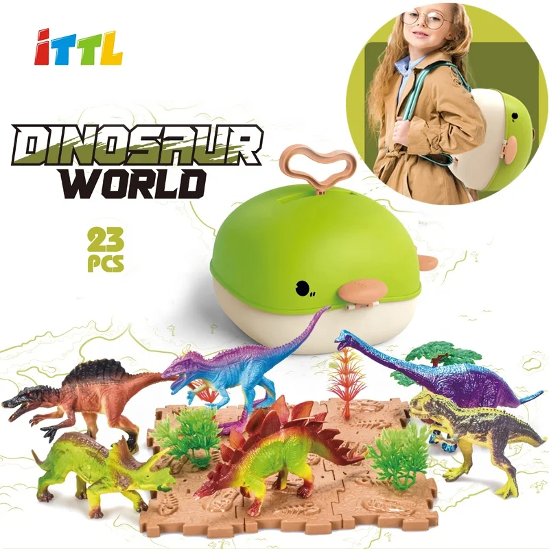 Juguetes Al Por Mayor Play House Storage Backpack Toy Set with Solid PVC Plastic Dinosaur Toy for Kids