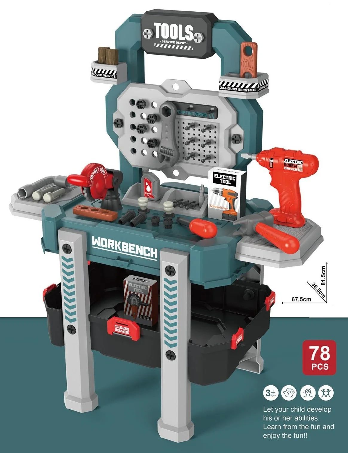 78pcs Plastic Tool Table Toy Electric Screwdriver Hand Tool for Kids