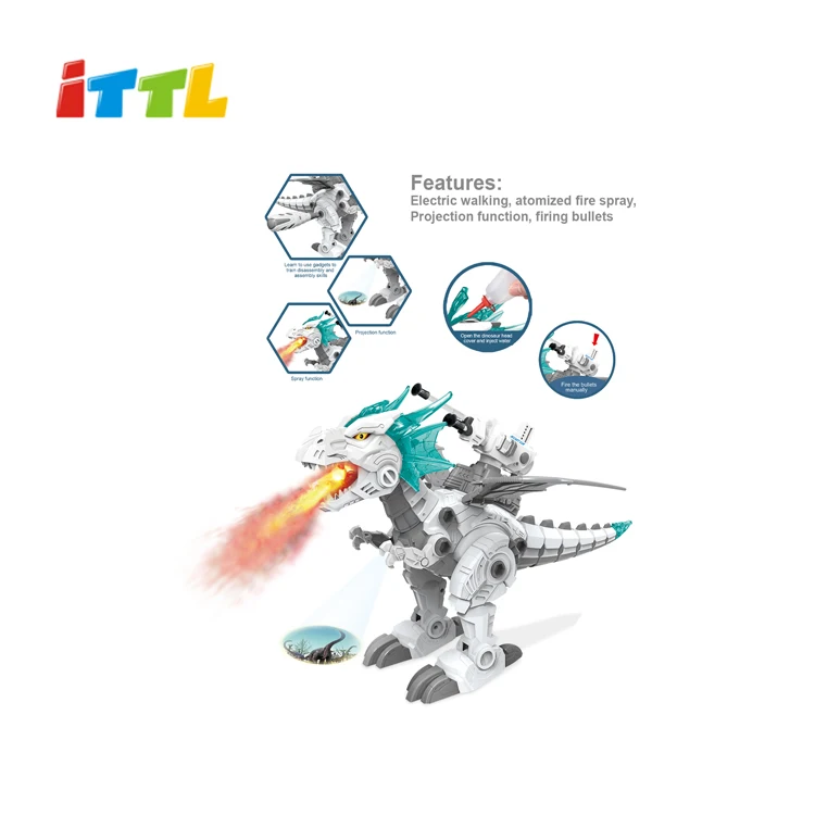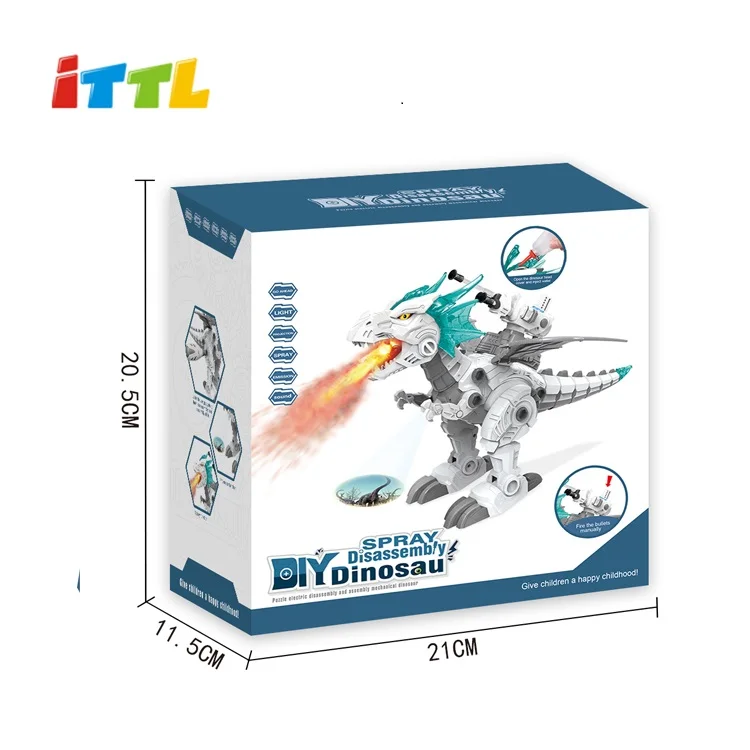 Kid DIY Block Dinosaur Radio Control Toy Electric Powered Plastic Dinosaur Gift with Pray Fire
