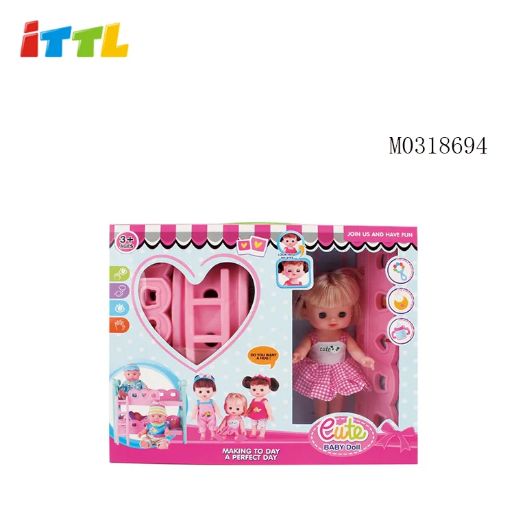 Pretend Play Plastic Doll Bunk Bed Baby Doll Crib for Kids