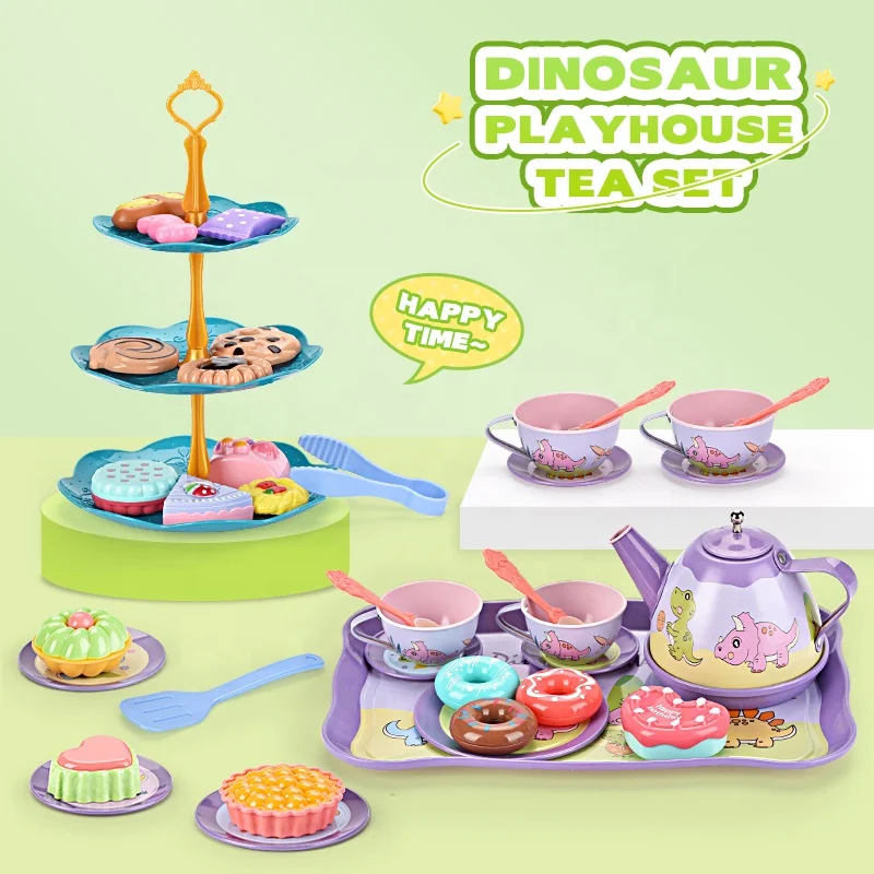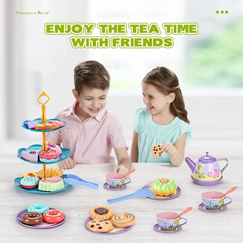 Children's Classical Mini Pot Play House Tin Tea Set Toy Good for Kids