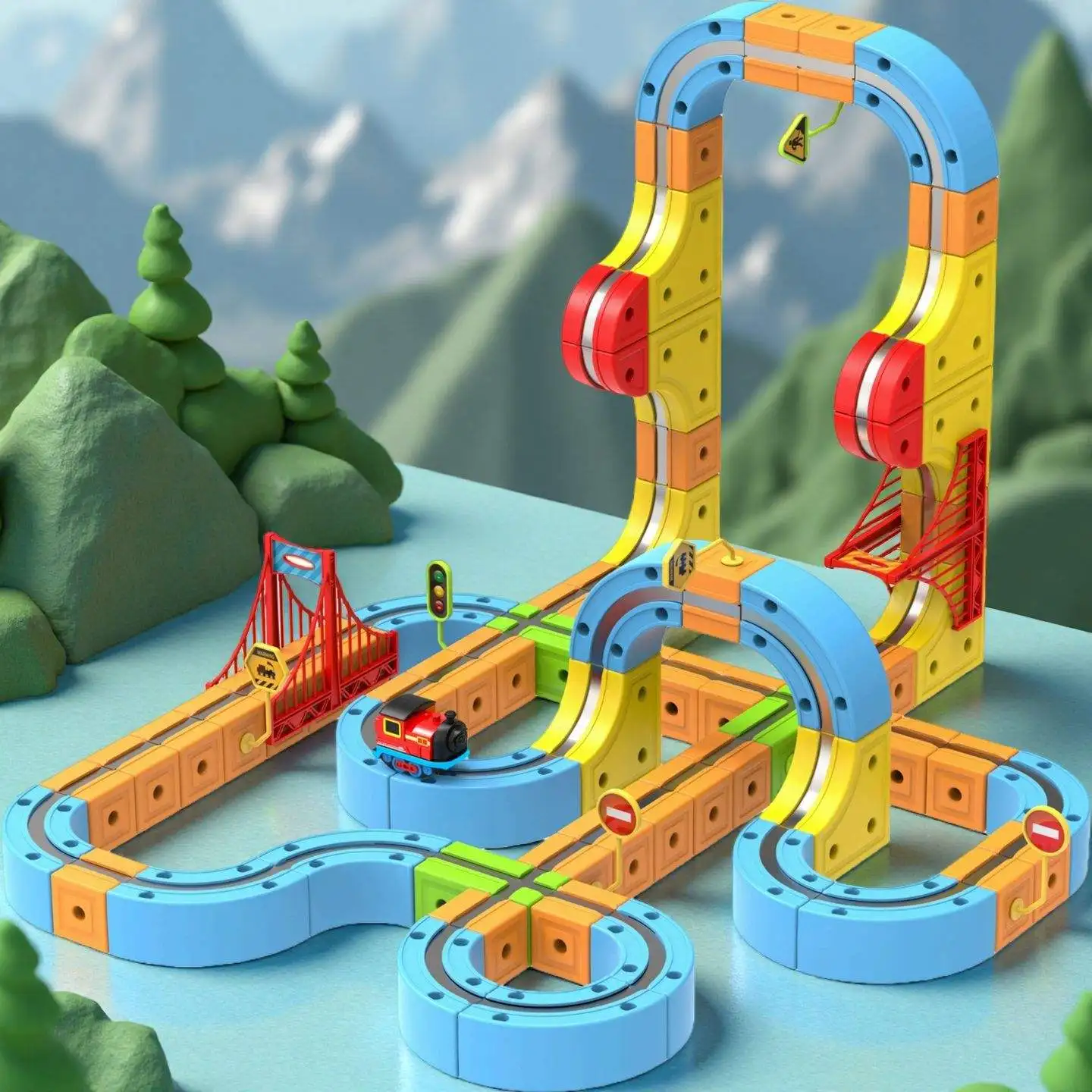 ITTL Kids DIY Assembly Track Car Racing Runway Slot Electronic Train Rail Cube Toy Slot Toys for Kids