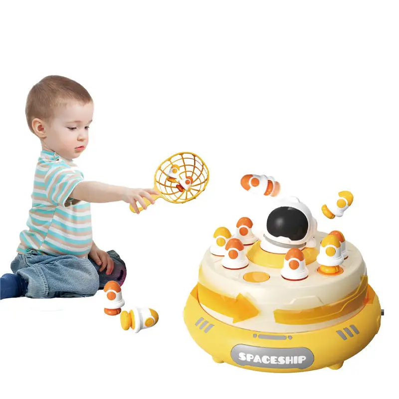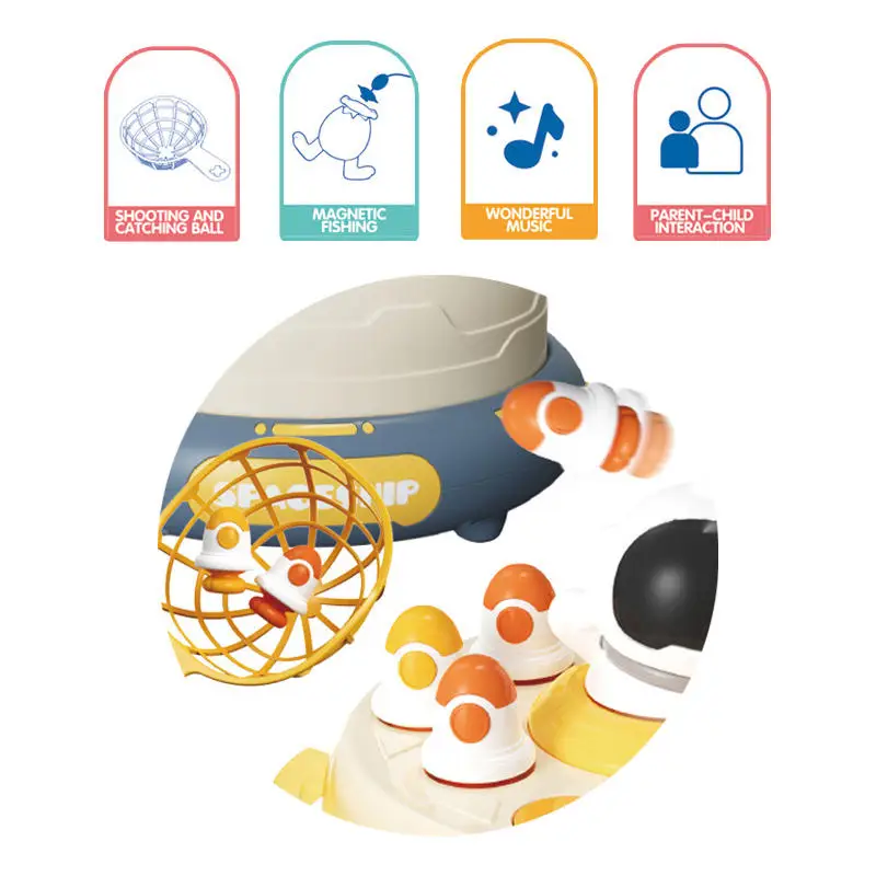 ITTL Electric Astronaut Fishing Board Game Music Interaction Pretend Play Toy Rocket Jumping Turntable Toys for Kids