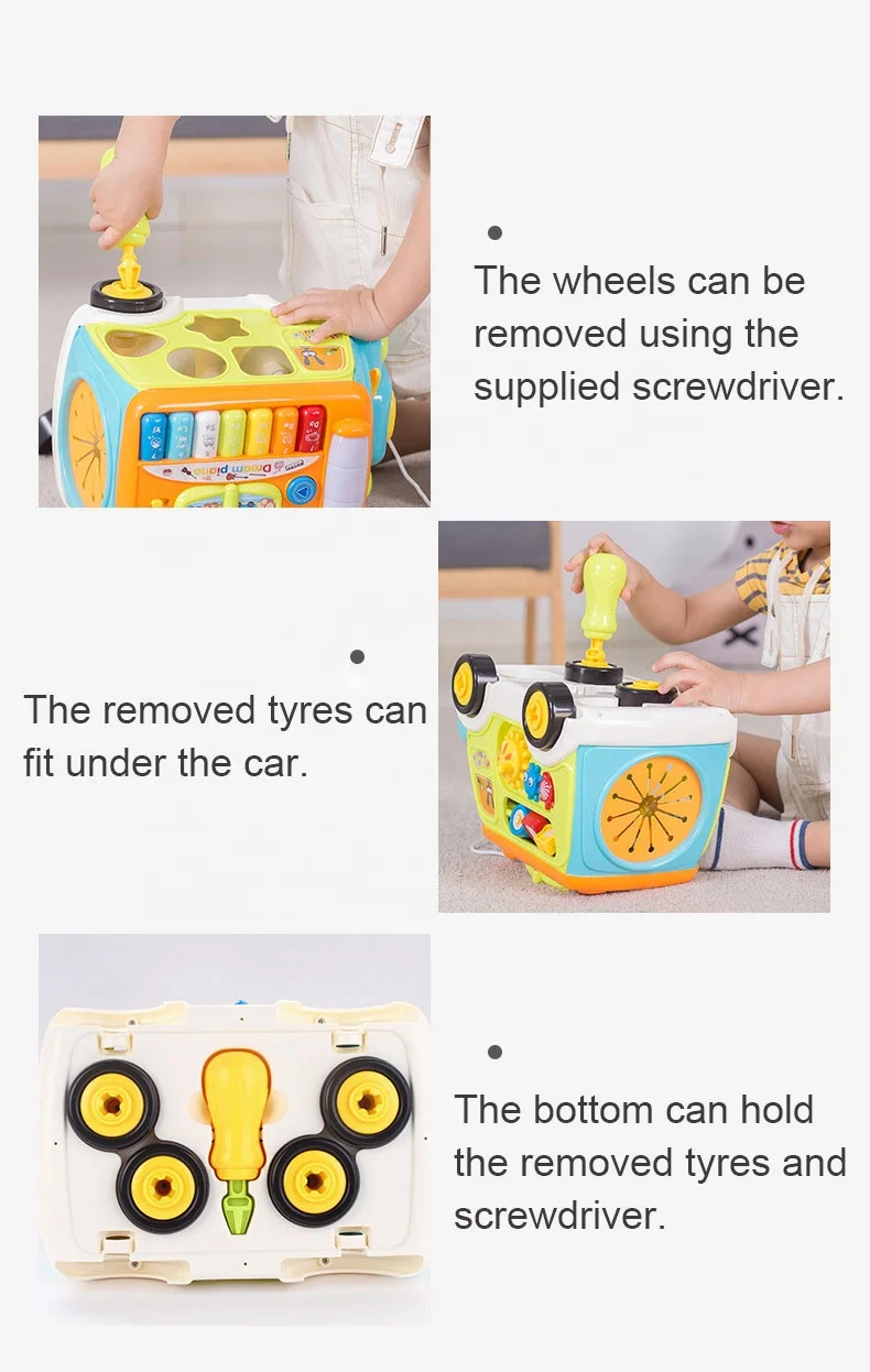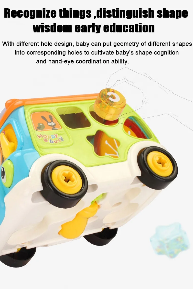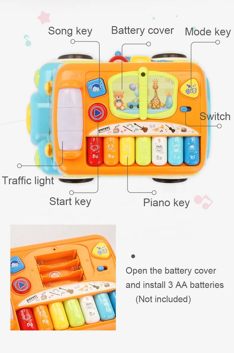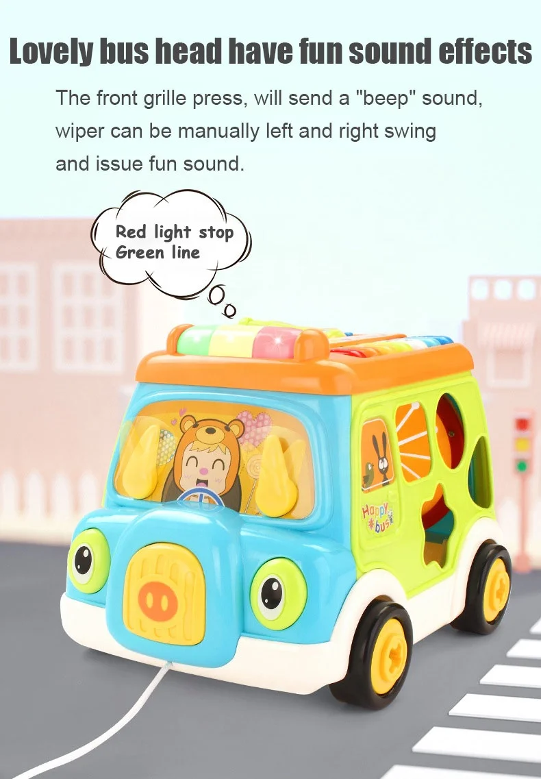 Cartoon Musical School Bus Toy Kids Educational Toddler Toys Anime Multifunction Baby Simulator Bus Toys With Music