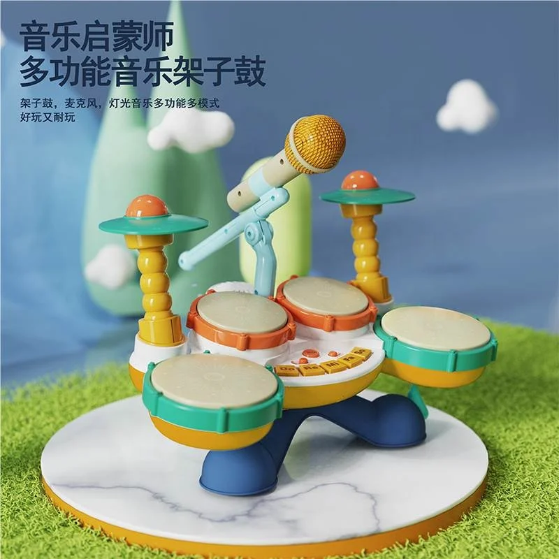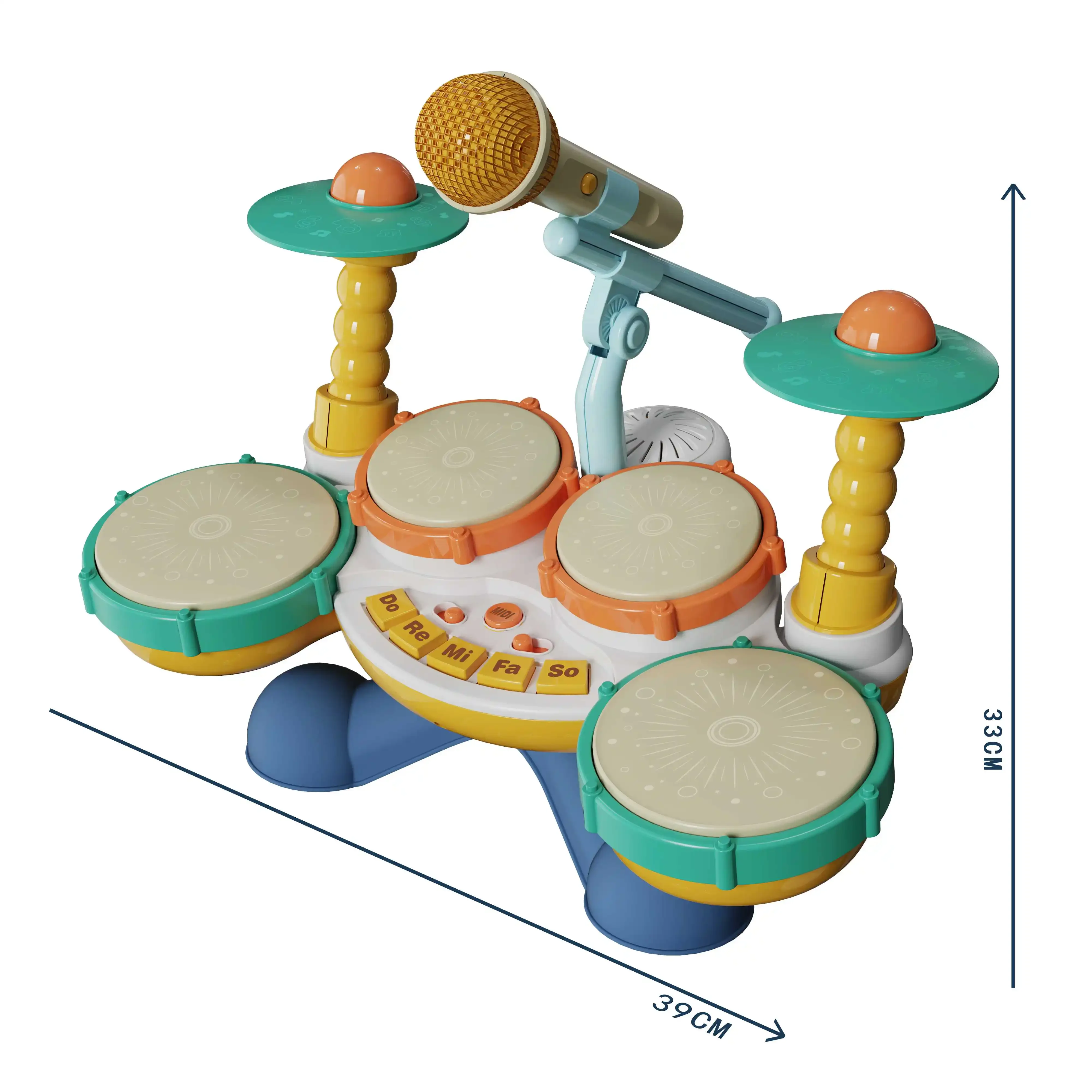Early Kids Toy Musical Drum Plastic Electric Drum Set with Light