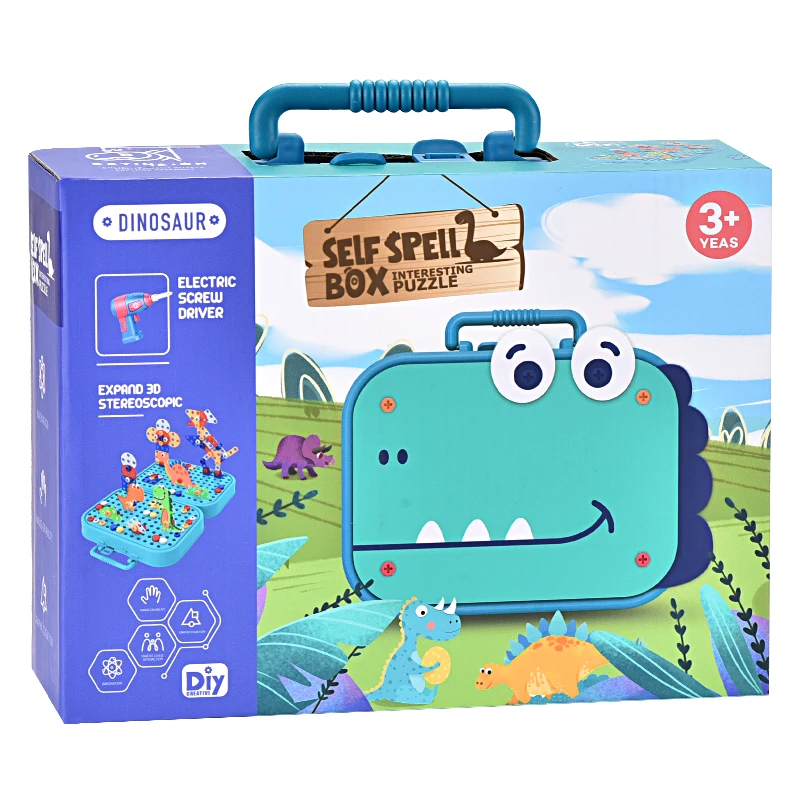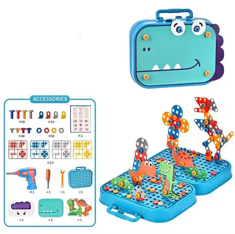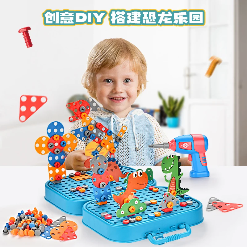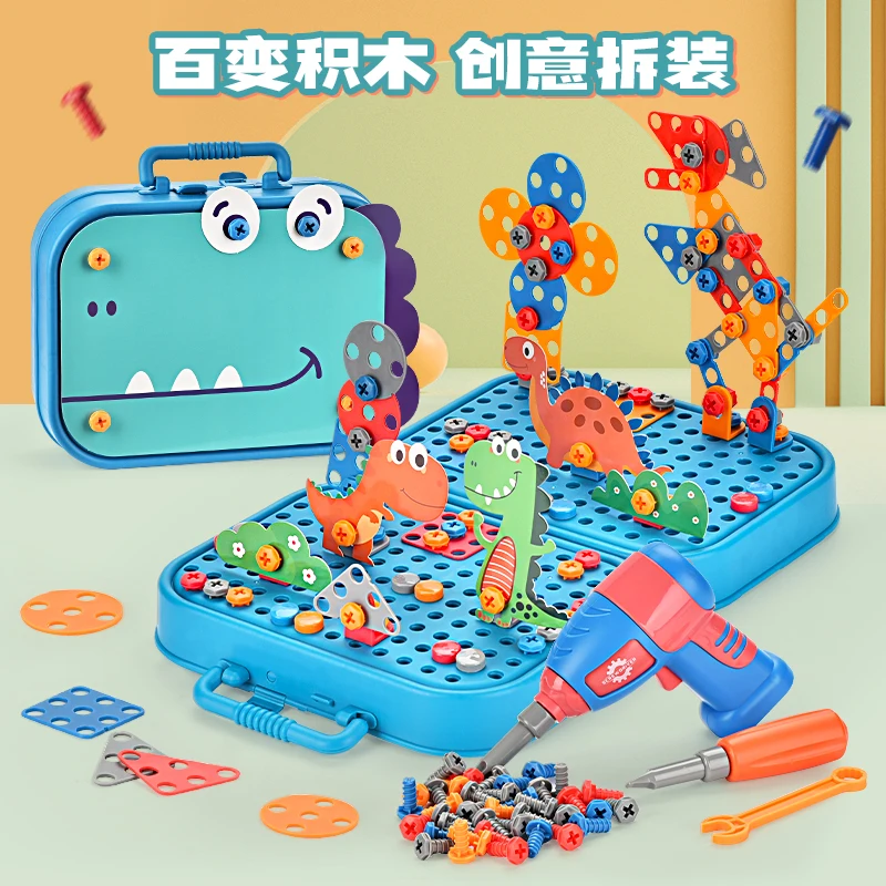 Assembly 3D Electric Hand Drill Game Dinosaur Toys Plastic 6 Months Baby Sensory Interactive Puzzle DIY Screw Toy