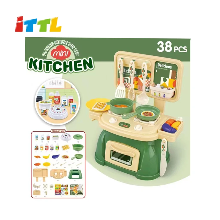 Mini Kitchen Tableware Set for Girls Children's Simulation Play House with Plastic Stove Toy Packed in Color Box