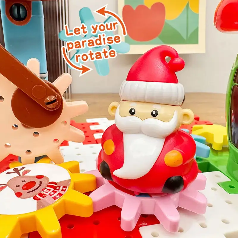 ITTL Christmas Classic Toy Electric Gear Rotating Puzzle Game 57PCS Particle Children Amusement Snowman Gear Brick Toys for Kids