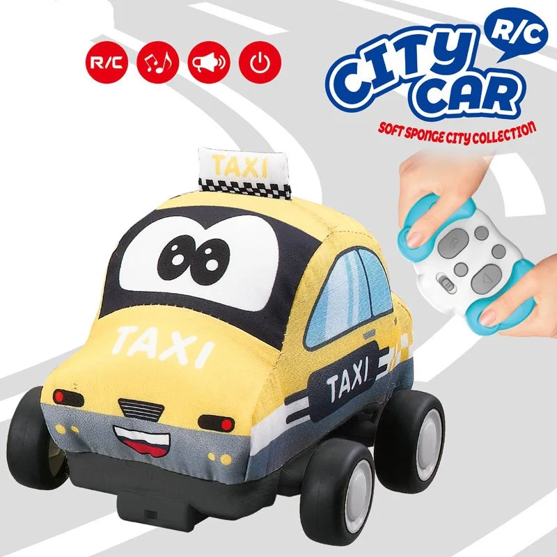 ITTL Children RC Cartoon City Car Remote Control Car Soft Plush Vehicle for Kids