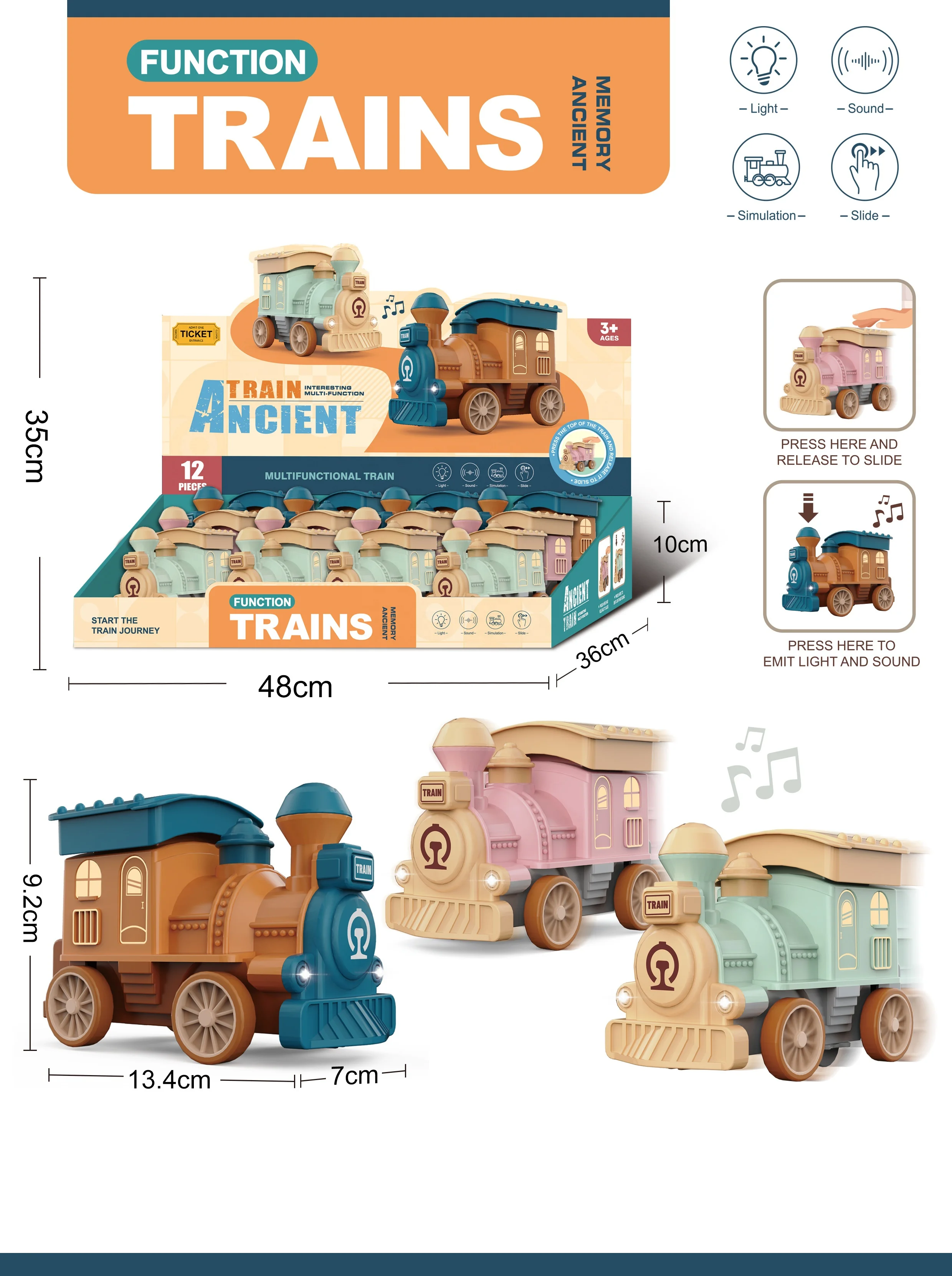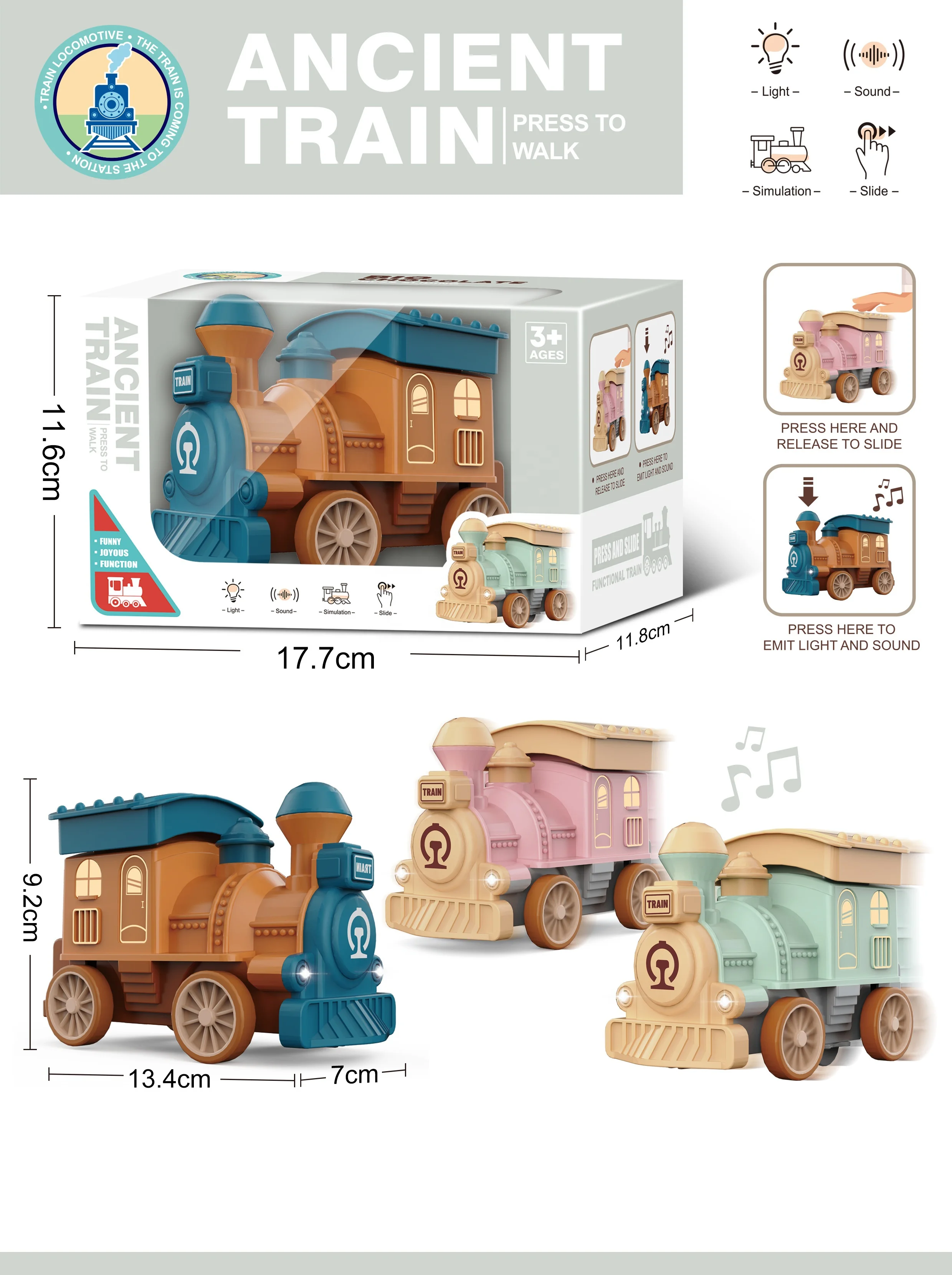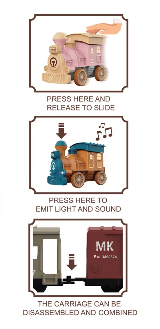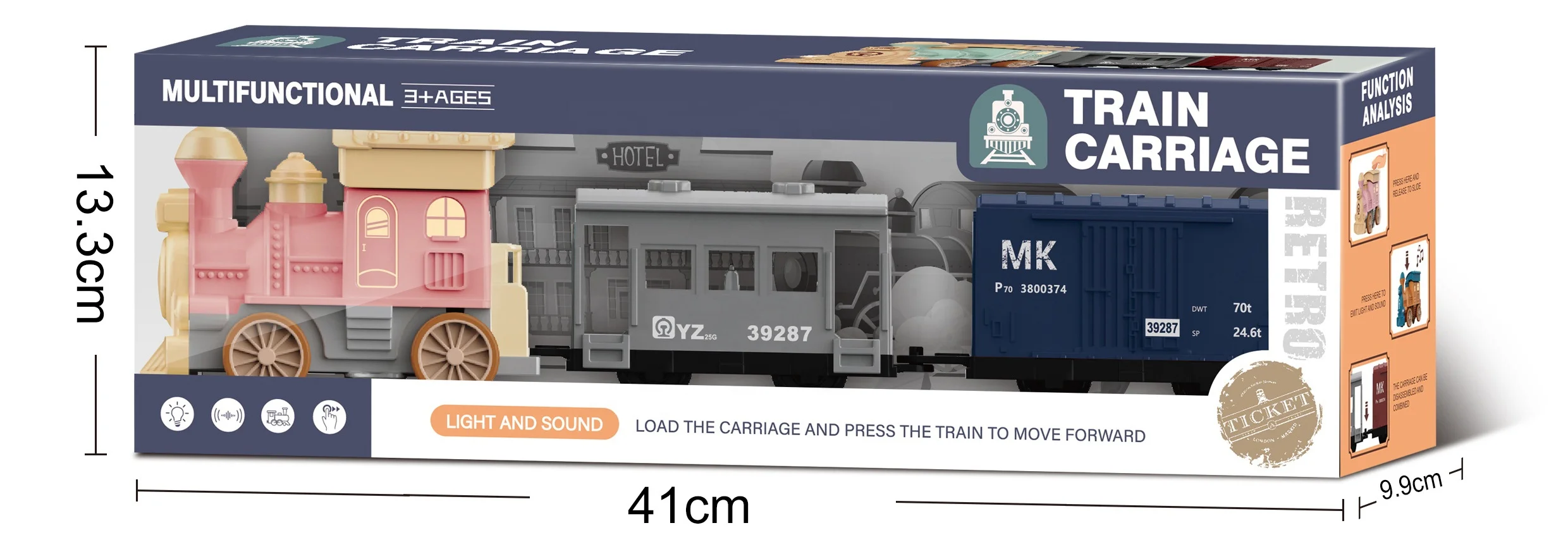 Kids Battery Operated Toys Bo Press Friction Train Carriage With Light and Music Cheap Inertial Train Trailer Car
