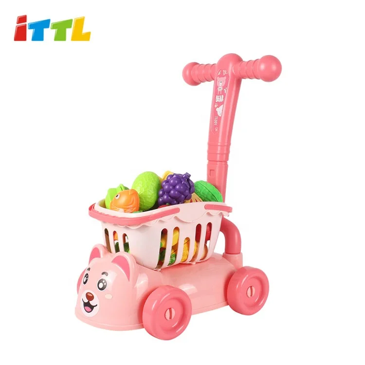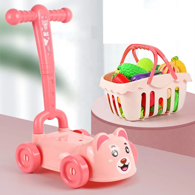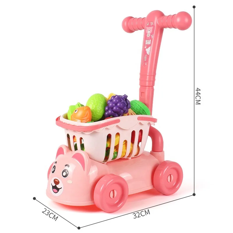Newest Plastic Kid Pretend Play Toy Shopping Cart Mini Trolley with Vegetable