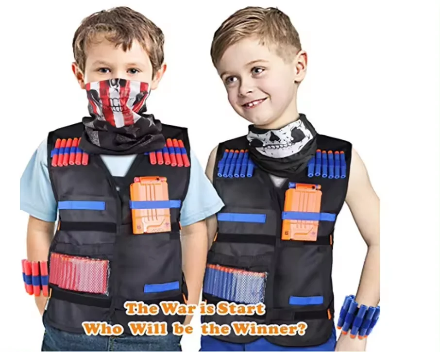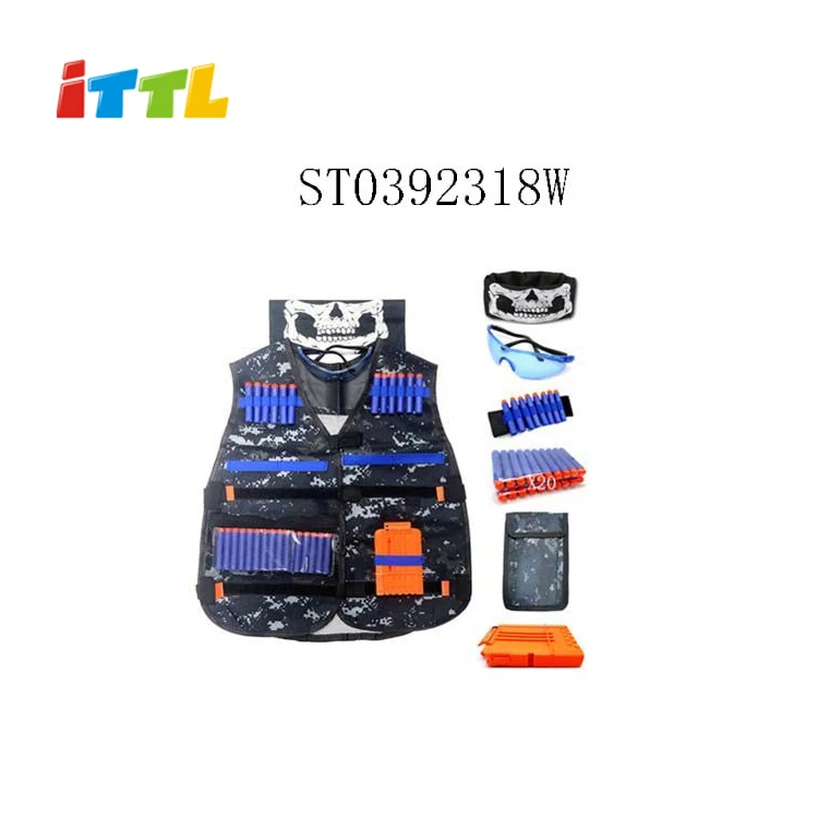 Girls Kids Pretend Play Preschool Kit Soft Tactical Vest Bullet Guns Wrist Bands Protective Glasses Outdoor Airsoft Shooting