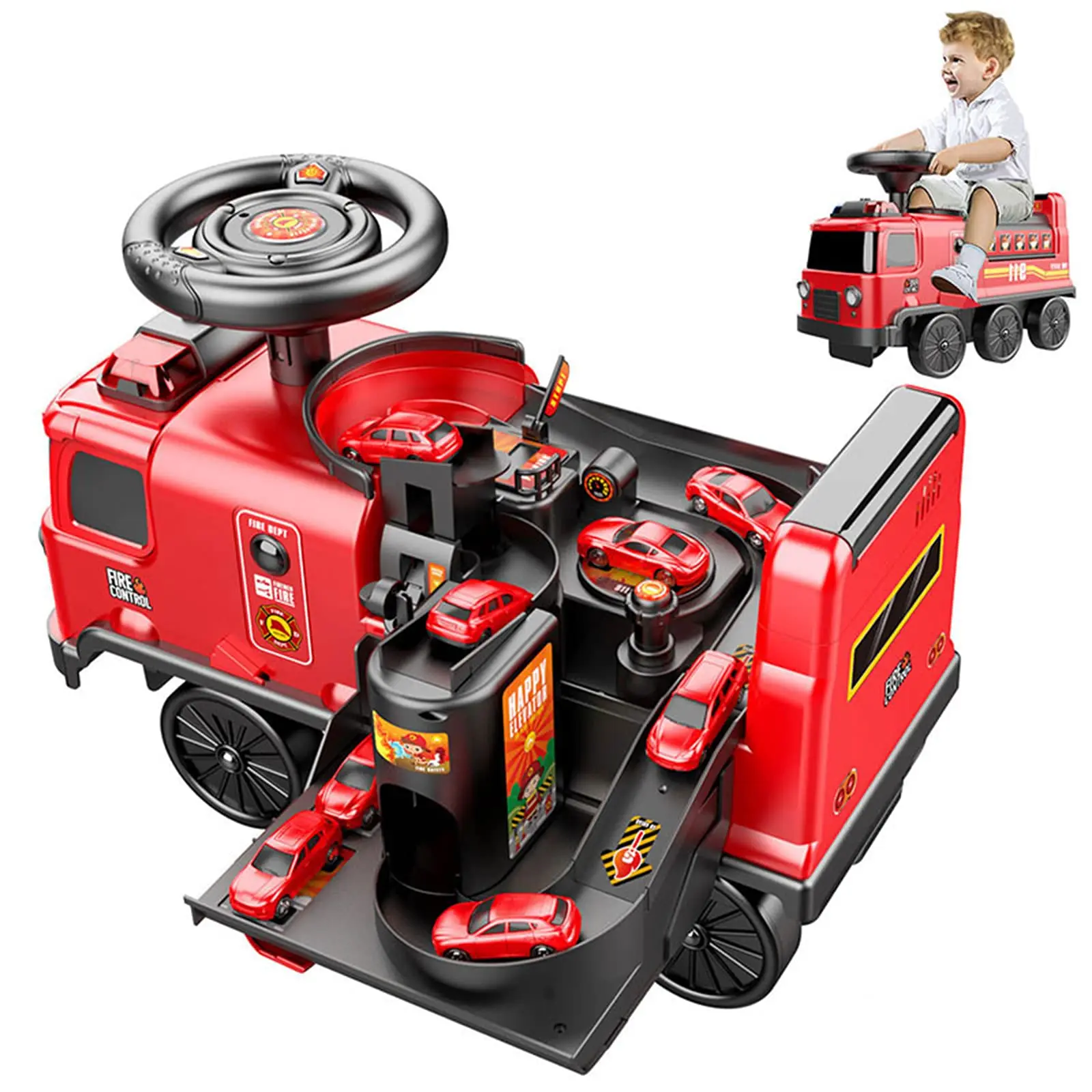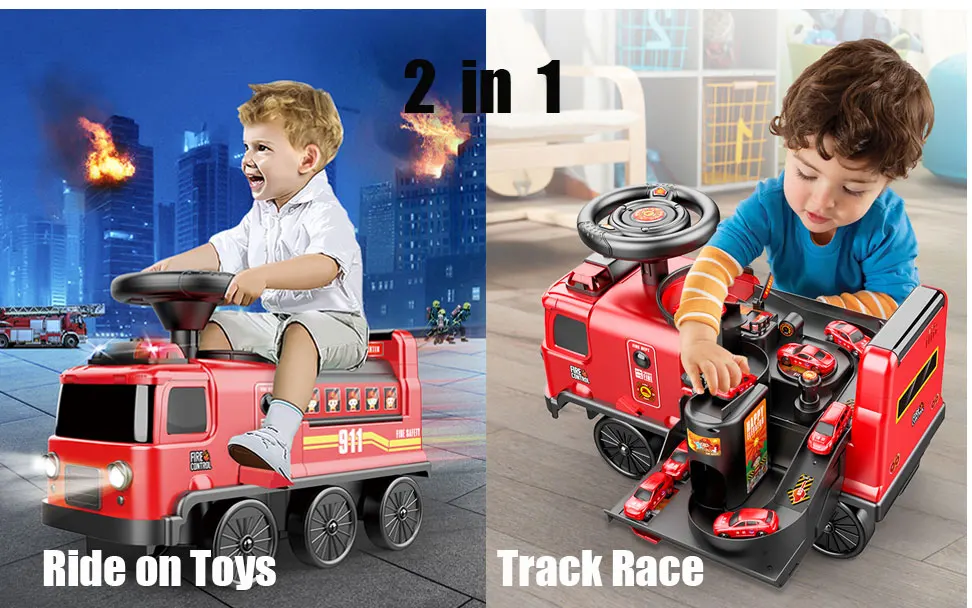 Kids Fire Electric Stroller Adventure Ride on Car Toy