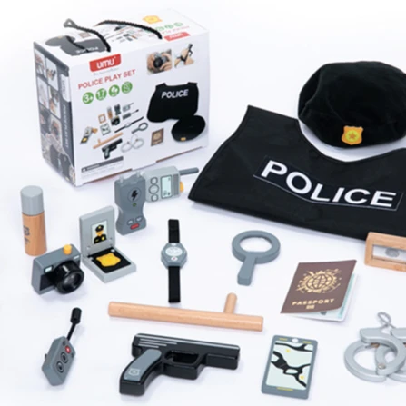 Christmas Gifts Baby Pretend Play Toy Kids Halloween Costume Role Playing Game Kids Police Station Toy Wooden Dress up