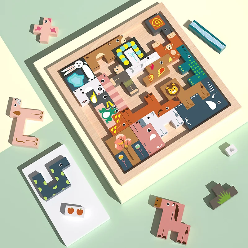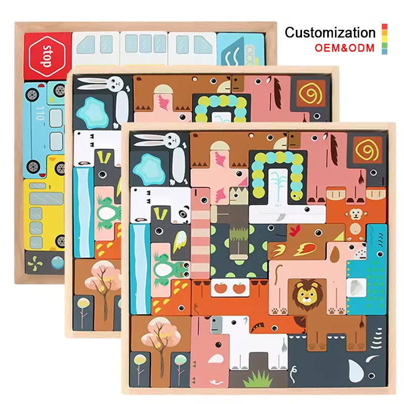 Wooden Board Kids Preschool Montessori 3D Learning Puzzles Toys Animal Puzzle 3D Other Educational Toy Jigsaw Custom Baby