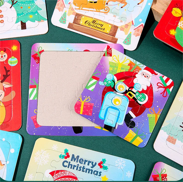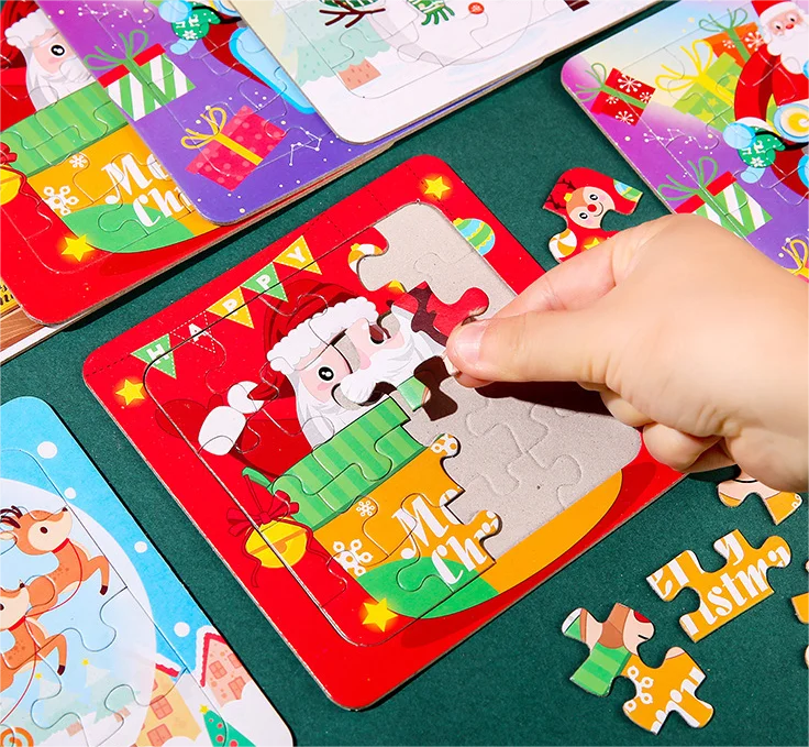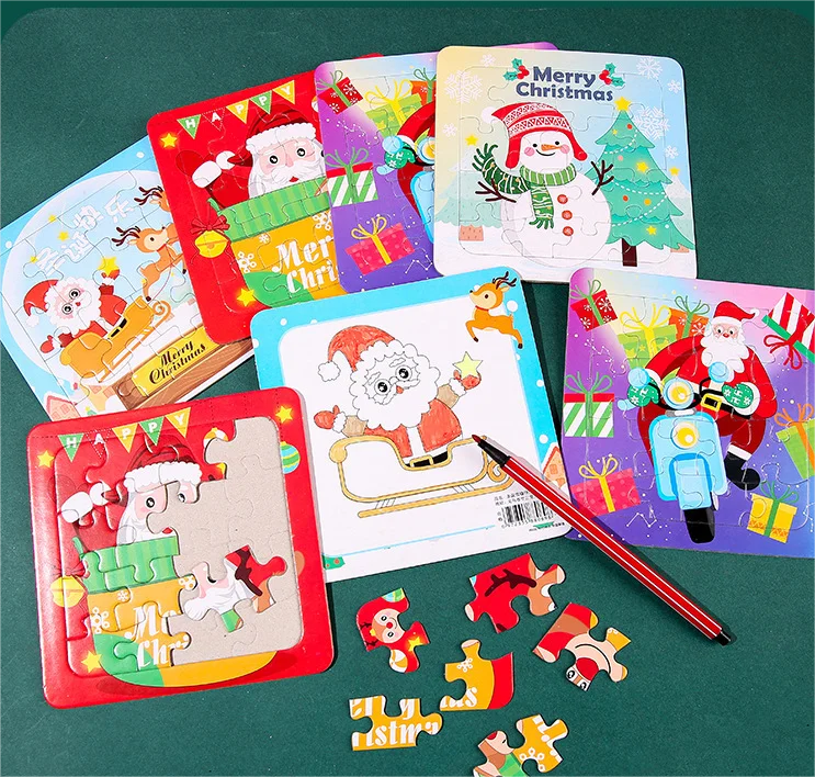 Christmas Gift Paper Cartoon Jigsaw Puzzle Set Dual Purpose Front Jigsaw Puzzle Reverse Drawing for Boys and Girls