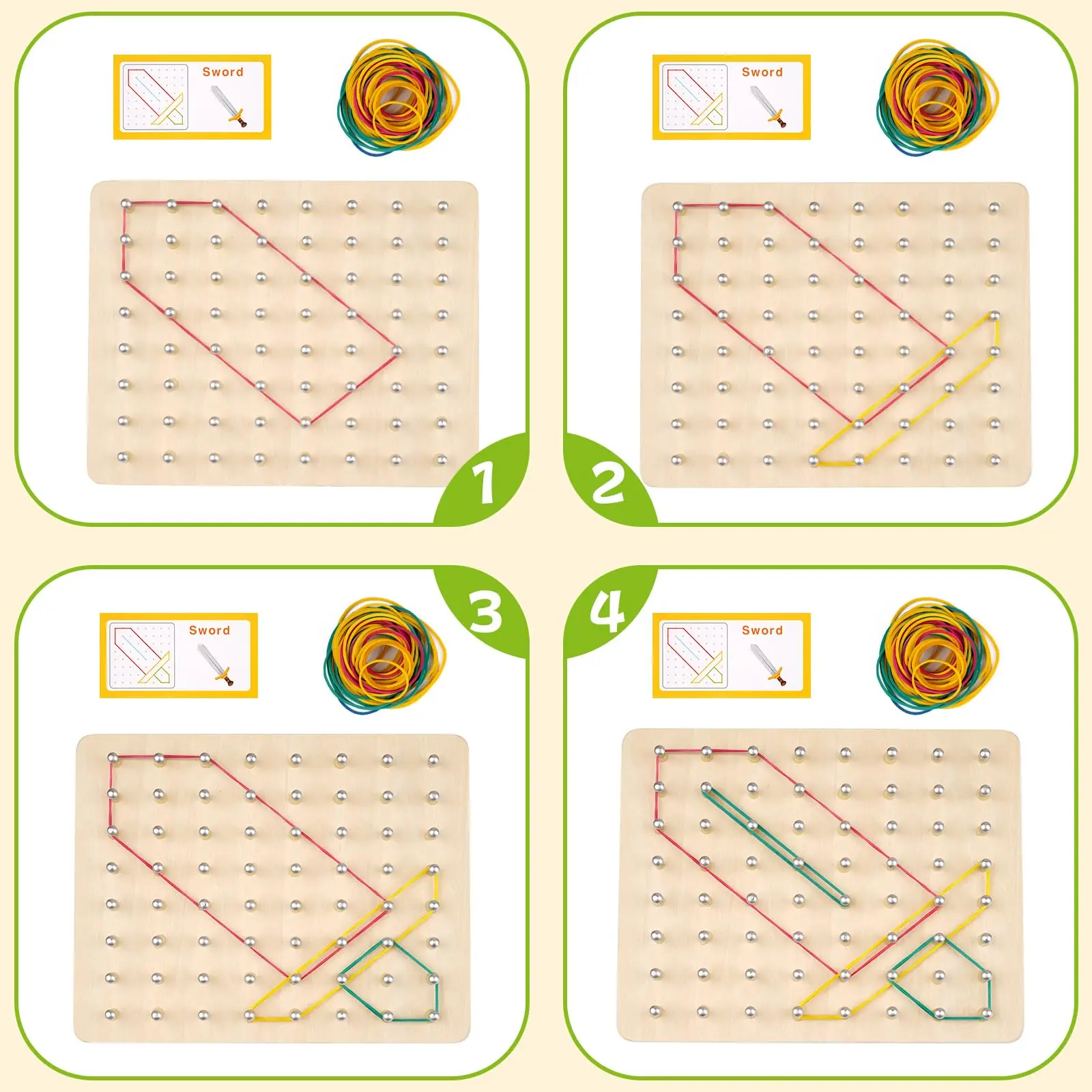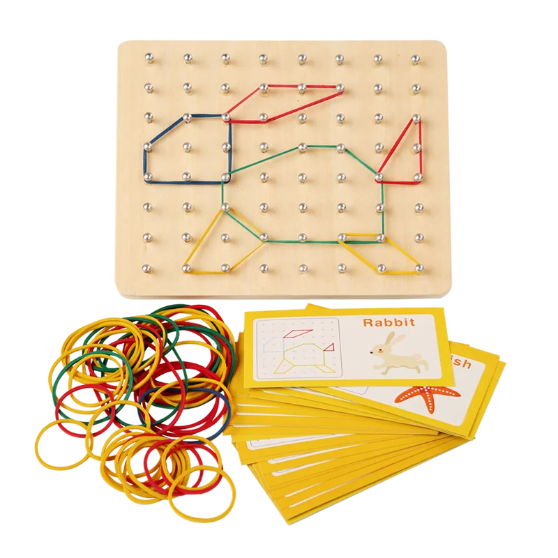 Children's Enlightenment Math Wooden Toys Set Geometric Shape Rubber Band Toys Montessori Educational Creative Toy