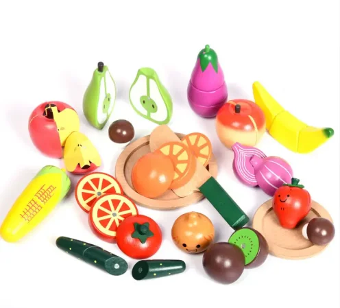 Montessori Educational Toys Kitchen Wooden Vegetables Set Toy Cutting Toys for Fruits and Vegetables Kids Child