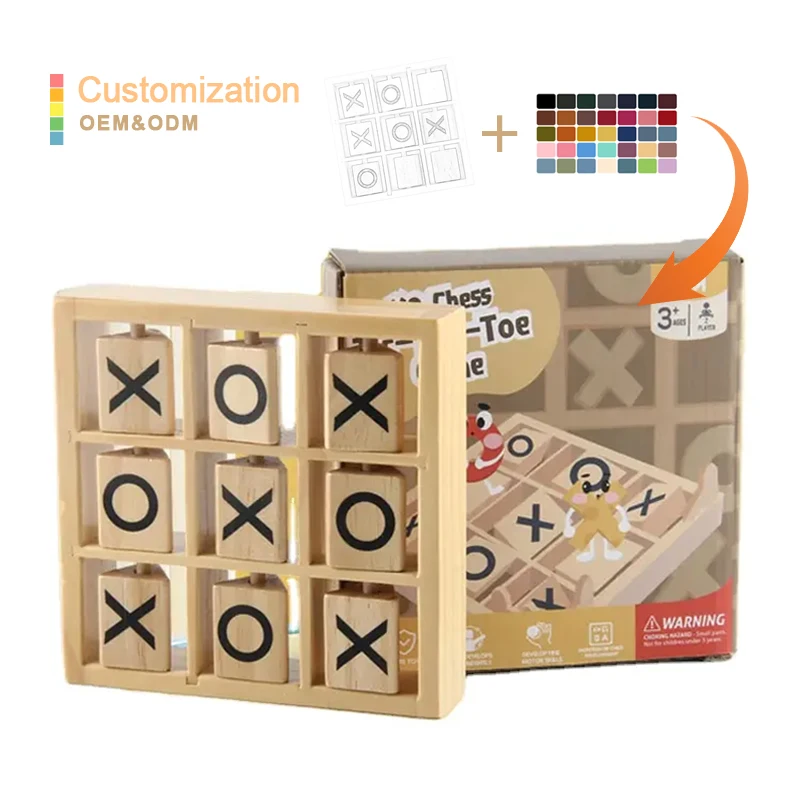 Wooden Tic Tac Toe Game Classic Noughts and Crosses Coffee Table X and O Game Wooden Board Game for Families Kids Party