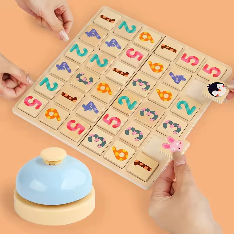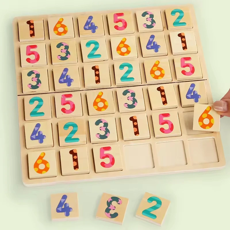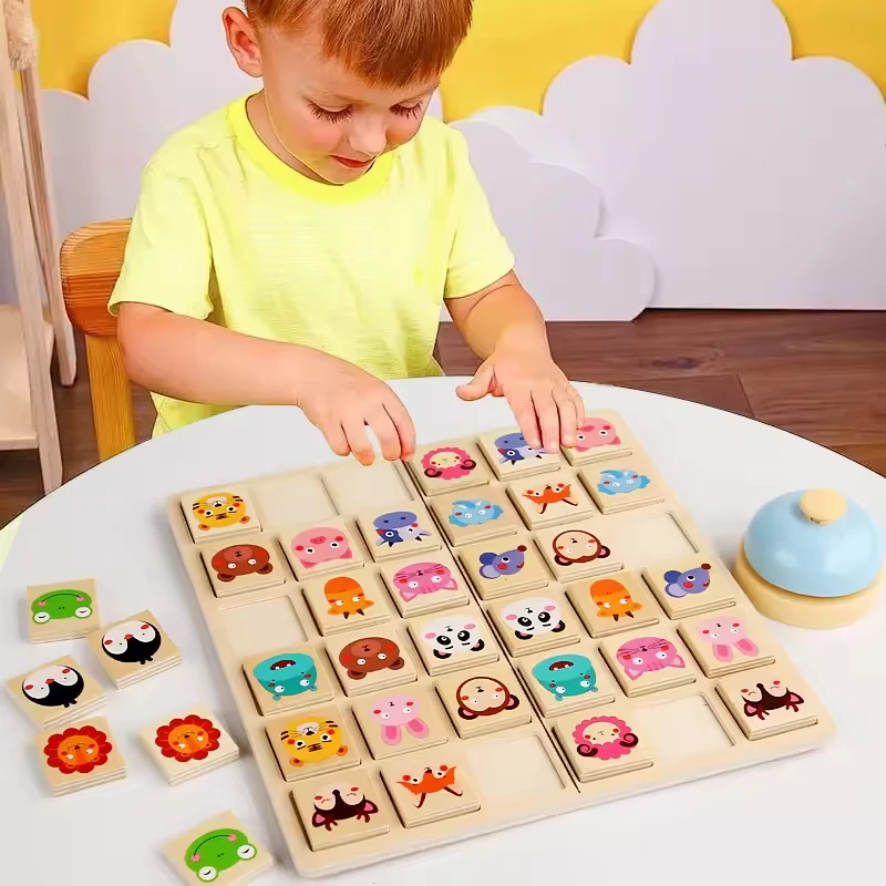 Wooden Family Flip Chess Puzzle Board Game Logical Thinking & Memory Matching Educational Toys for Kids Travel-Friendly