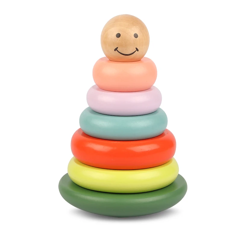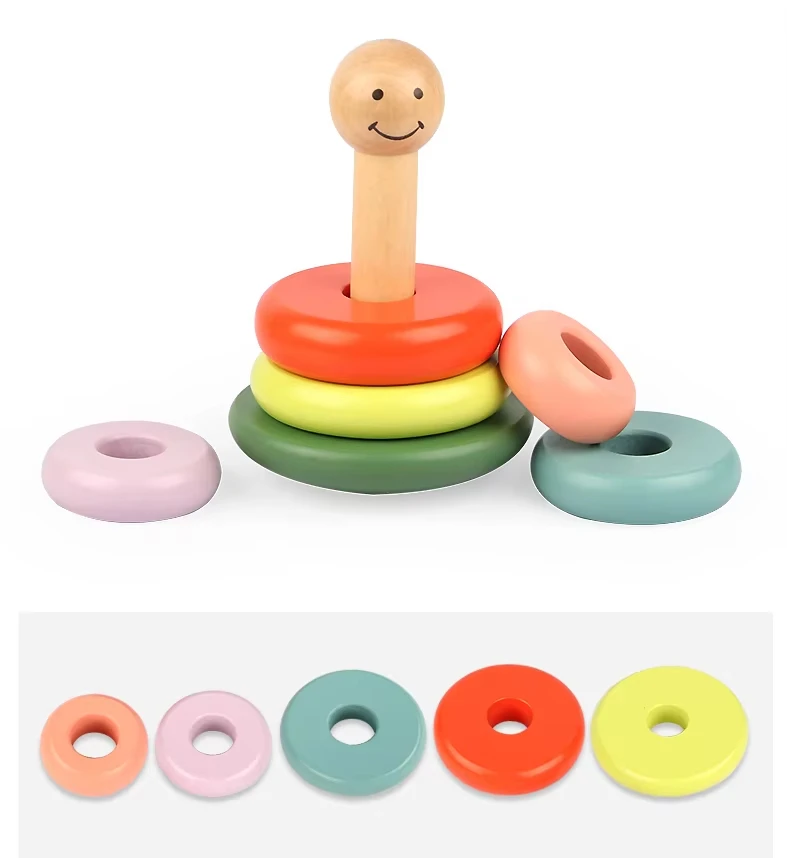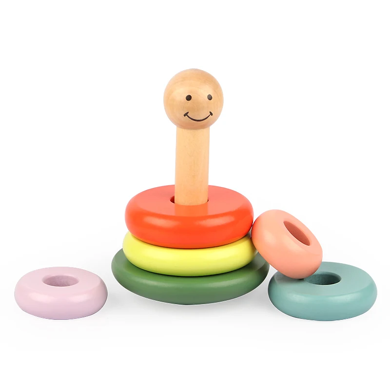 Montessori Puzzle Building Block Children Educational Colorful Smiling Face Tumbler Wooden Toddlers Building Blocks