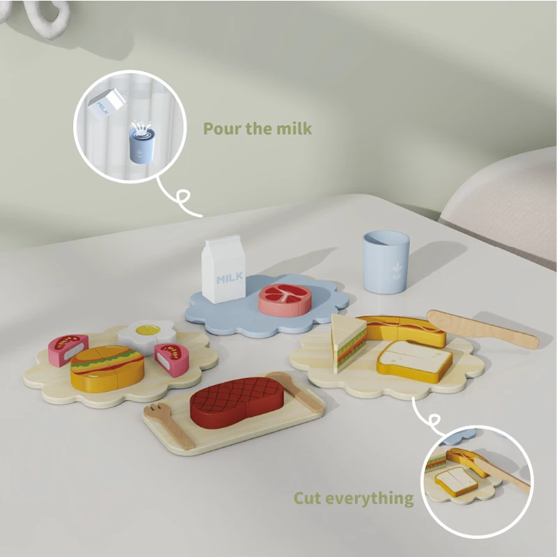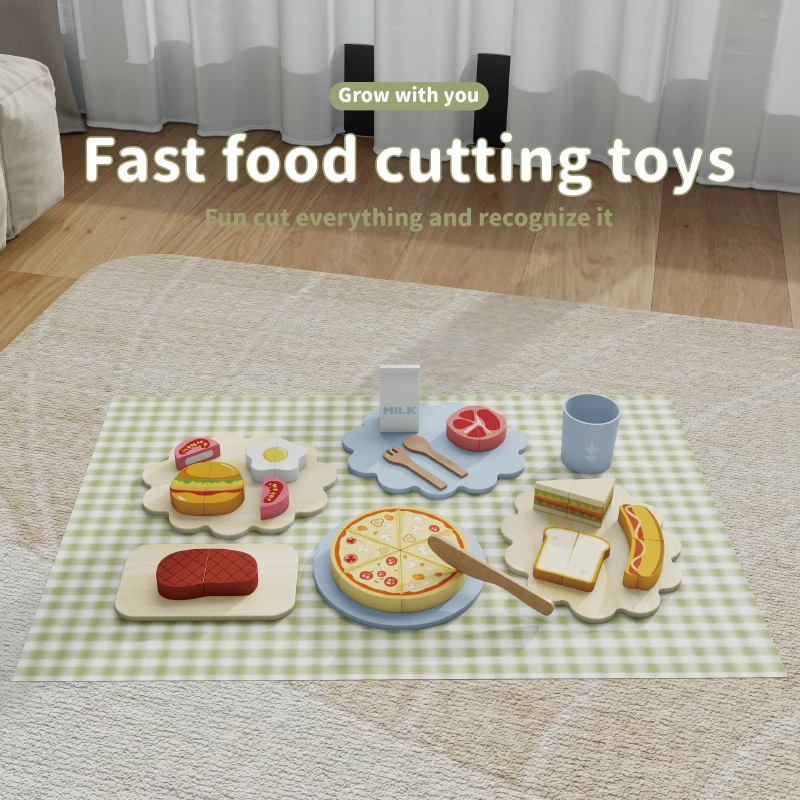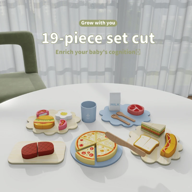 Children's Wood Kitchen Wisdom Play Set Early Cooking Group Food Accessories Simulated Cutting Tableware for Home Use