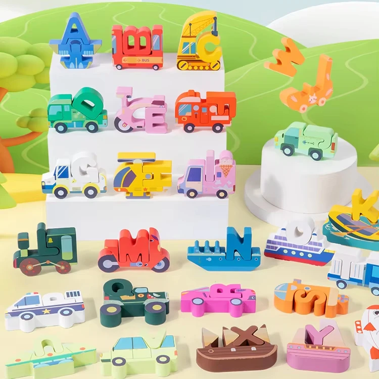 Children's Educational Wooden Puzzle Toy for English Learning Alphabet Board Shape Animal Color Matching Cognitive Toy for Kids
