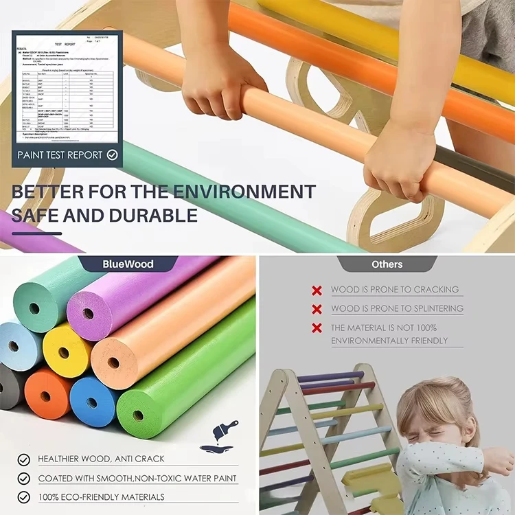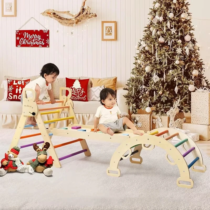Montessori Inspired Children's Wooden Climbing Frame Rainbow Steel Triangle Set for Toddlers Gym Kindergarten Play for Kids