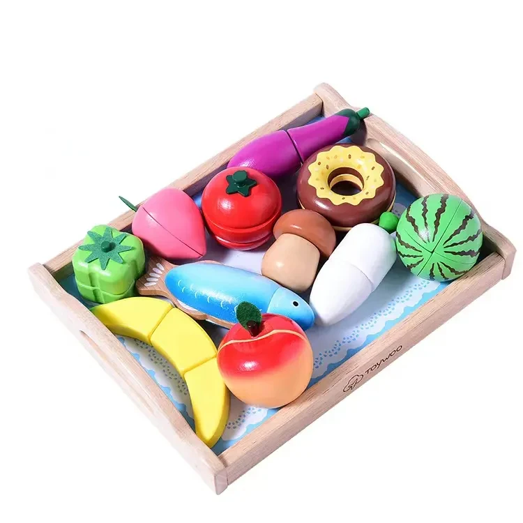 Newest Kids Toys Kitchen Set Custom Wooden Vegetables Set Toy Cutting Toys Fruits and Vegetables Kids Child