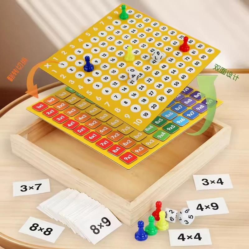 Mathematical Addition Subtraction Double Sided Board Table Dice Card Games Wooden Multiplication Math Board Educational Toys