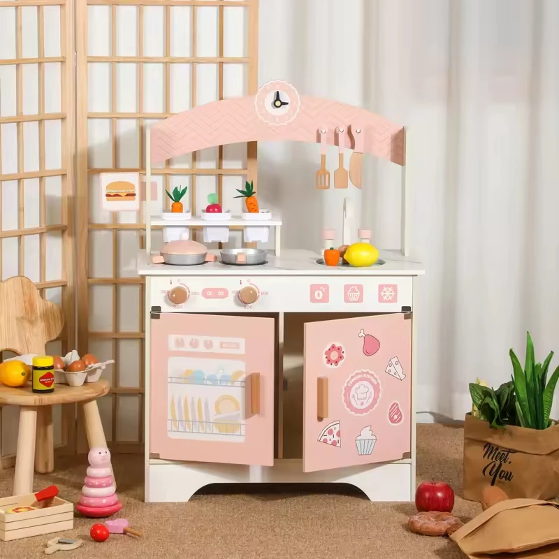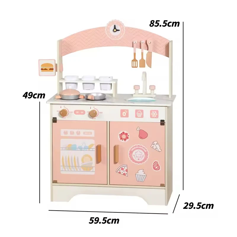 Kids Wooden Role Play Toy Kitchen Pretend Play Set Wood Pink Children's Pretend Kitchen Toys Wooden Kitchen Toy