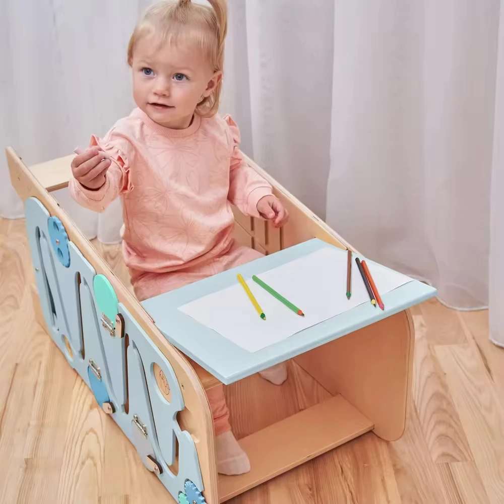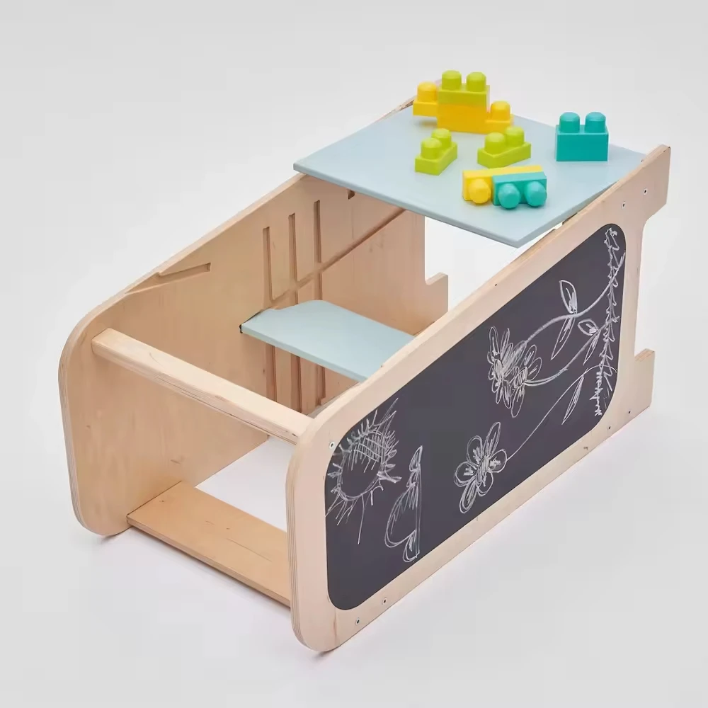 Custom Toddler Folding Kitchen Stool Helper Montessori Multifunction Wooden Learn Tower Chalkboard Living Room Dining Home Use