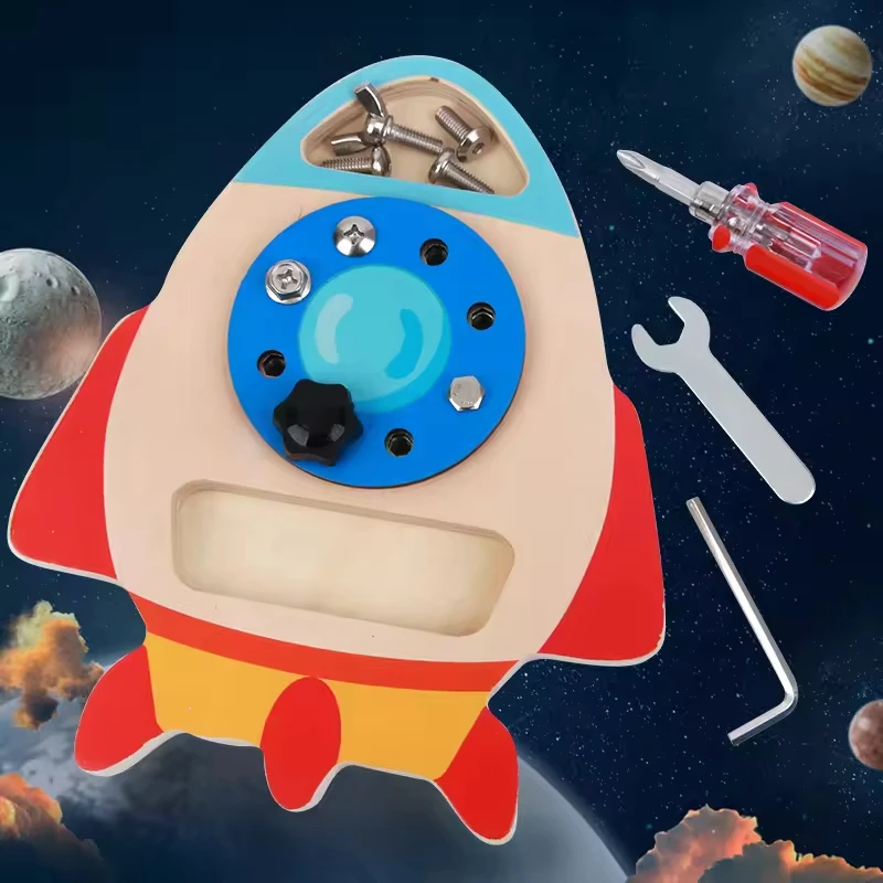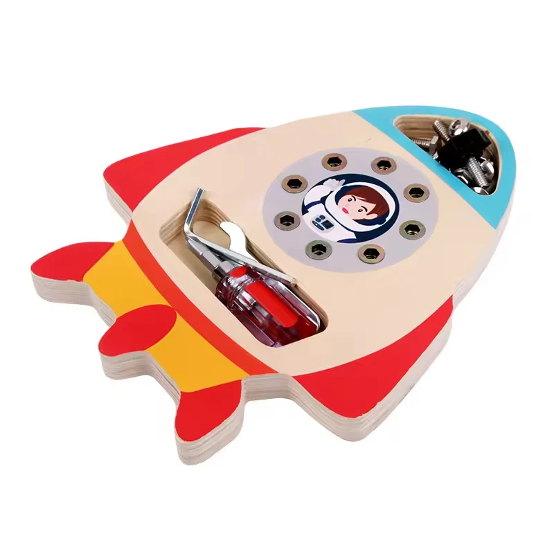 CPC CE Best Selling Nut Rocket Montessori Screwdriver Board Set Wooden Learning Sensory Toys for 3 4 5 Year Old Kids and Toddler