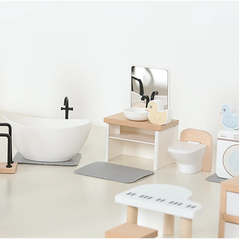 Hot-selling New Nordic Style Simulation Mini Furniture Wooden Bedroom Toy Set Kids Doll House Accessories Miniature Scene