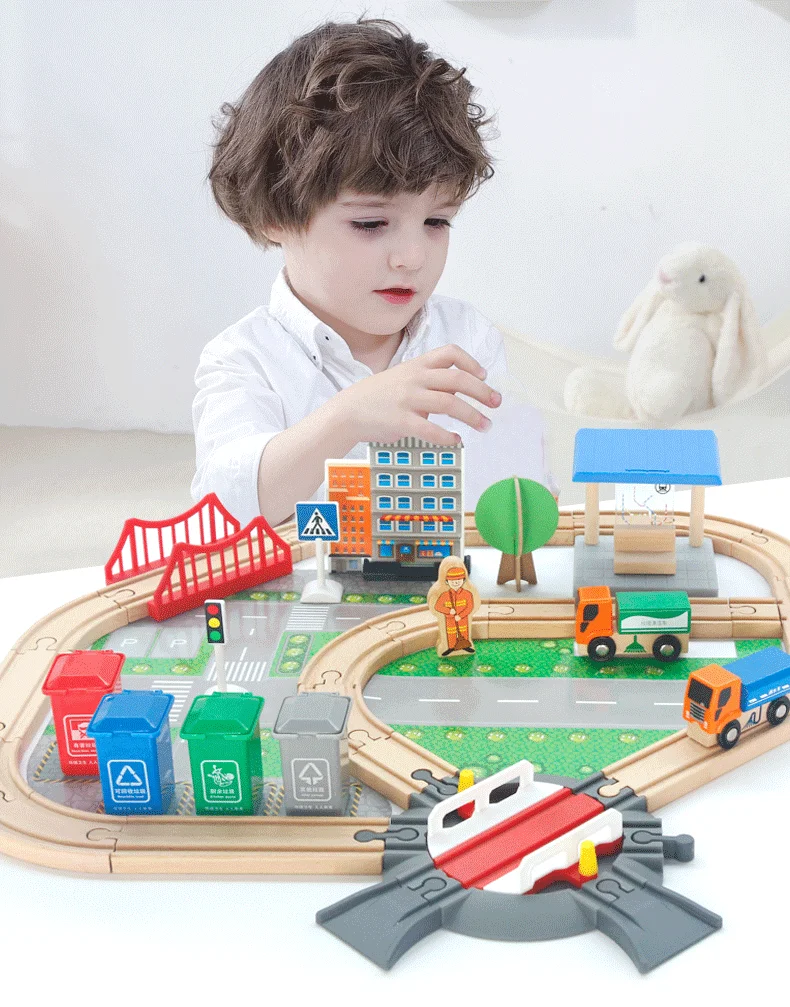 2026 Hot-selling 139 Pcs Wooden Train Track Deluxe Electric Train With Sound Feature Wooden Trains Track Set Game Toys for Kids