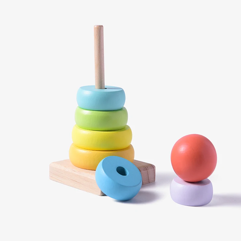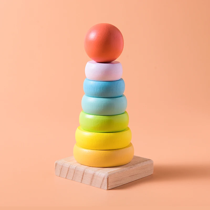 3-6 Years Montessori Toys Wooden Iridescence Tower Early Educational Game Blocks Baby Bridge Rainbow Stacking Blocks Tower Toys