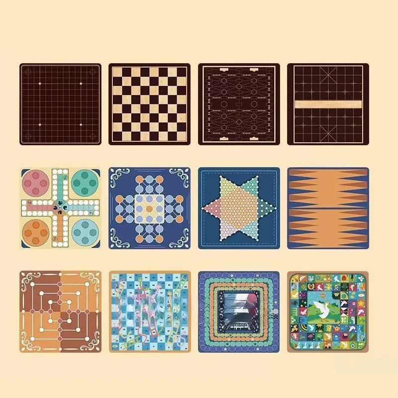 Wholesale 12 in 1 Chess Game Set Wooden Board Game Set Multi-player for Family